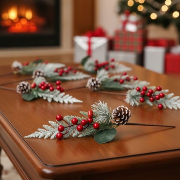 Dekoratif kozalaklı yapay kokina, yılbaşı konseptli dekorasyonlara sıcak ve doğal bir hava katmak için tasarlanmış şık bir süsleme ürünüdür. 35 cm boyundaki yapısı sayesinde kapı süslerinde, çam ağacı dekorlarında, masa düzenlemelerinde, hediye paketlemelerinde ve çeşitli craft çalışmalarında rahatlıkla kullanılabilir. Gerçek dokulu yaprakları, kırmızı meyve detayları ve kozalak süslemesi sayesinde oldukça estetik bir görünüm sunar. Dayanıklı yapay malzemeden üretilmiş olması sayesinde uzun süre formunu korur ve tekrar tekrar kullanılabilir. Mevsimlik süslemelerde, özel günlerde ve ev dekorasyonunda zarif bir tamamlayıcı olarak tercih edilebilir.