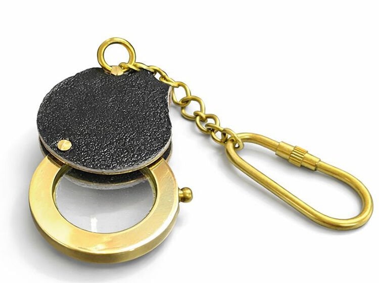 DERİ DETAYLI PİRİNÇ BÜYÜTEÇ ANAHTARLIK