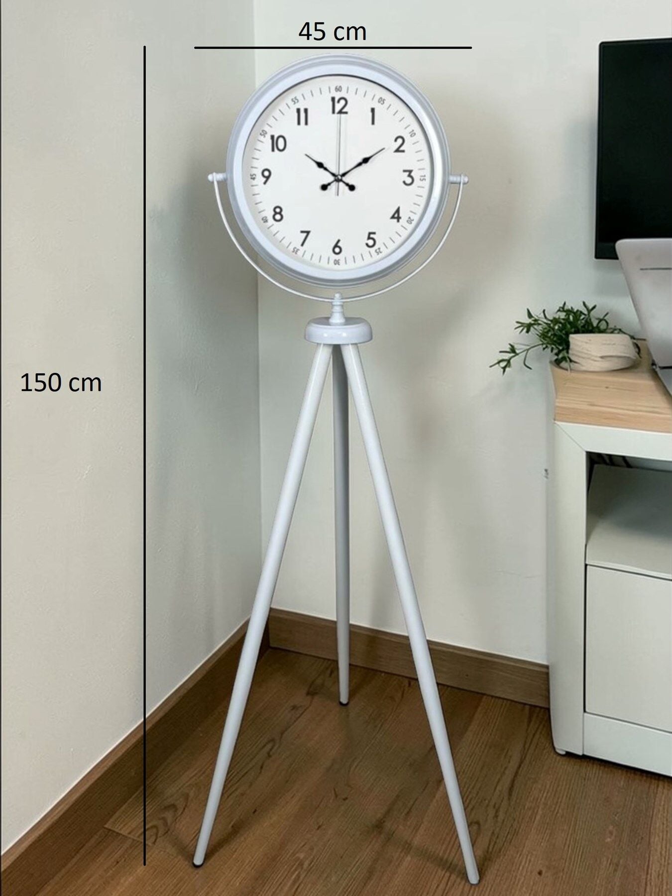 Modern tasarımı ve zarif duruşuyla dikkat çeken 150 x 45 cm beyaz ayaklı saat, yaşam alanlarınıza sade ama etkileyici bir şıklık kazandırır. Ferah beyaz rengi sayesinde hem modern hem klasik dekorasyonlarla kolayca uyum sağlar. Tripod (3 ayaklı) yapısı ile bulunduğu ortamda sadece bir saat değil, aynı zamanda dekoratif bir obje olarak öne çıkar.