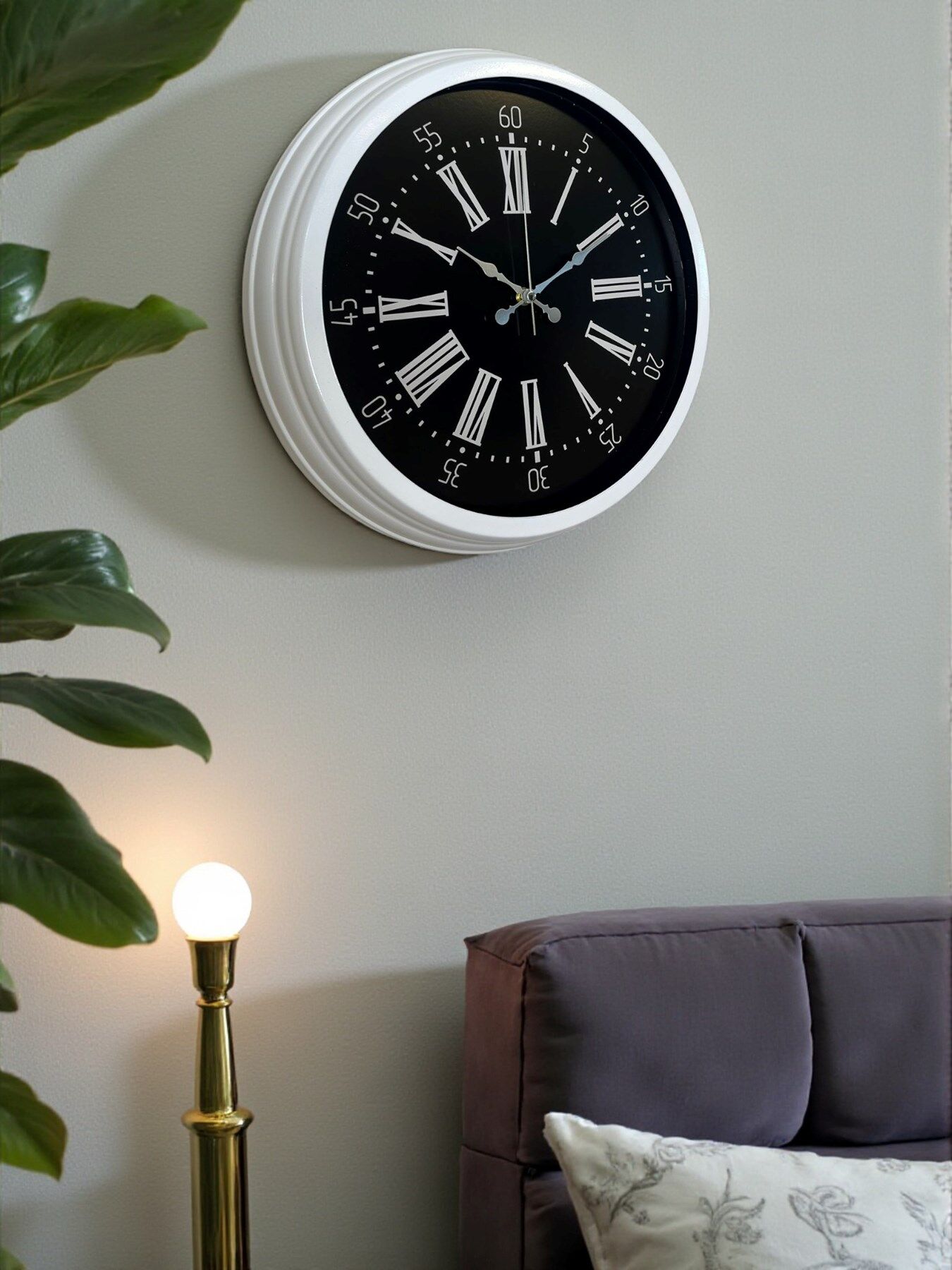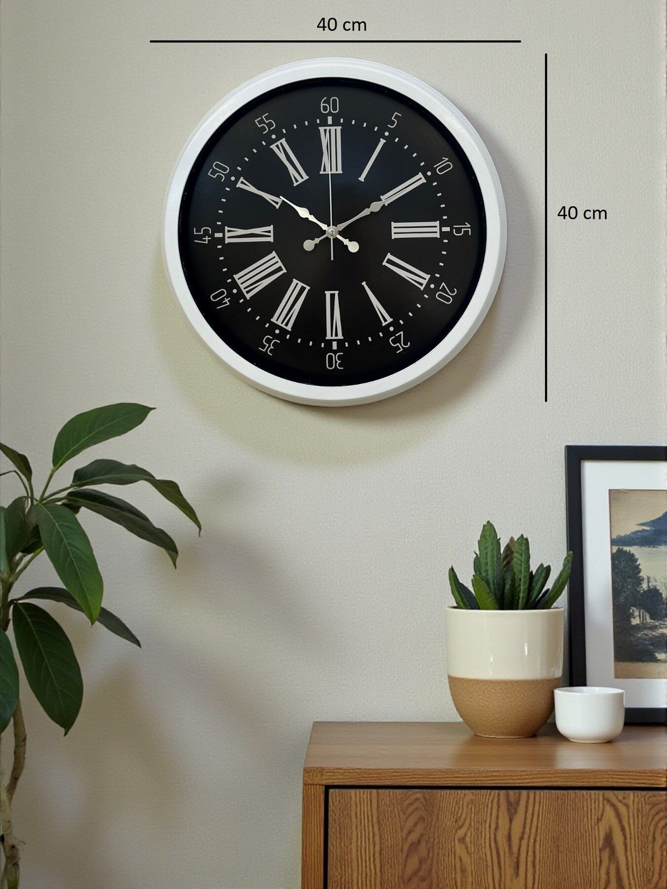 Klasik Roma rakamlarının asaleti ile modern siyah kadranın güçlü duruşunu bir araya getiren bu duvar saati, bulunduğu ortama hem şıklık hem de karakter kazandırır. Beyaz metal kasası sayesinde duvarda ferah bir görünüm sunarken, siyah zemin üzerindeki Roma rakamları ile dikkat çekici ve prestijli bir tasarım oluşturur.