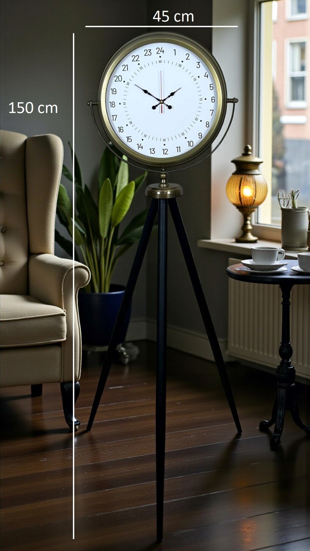 Eskitme 24 Saat Göstergeli Özel Tasarım Tripod Ayaklı Saat
