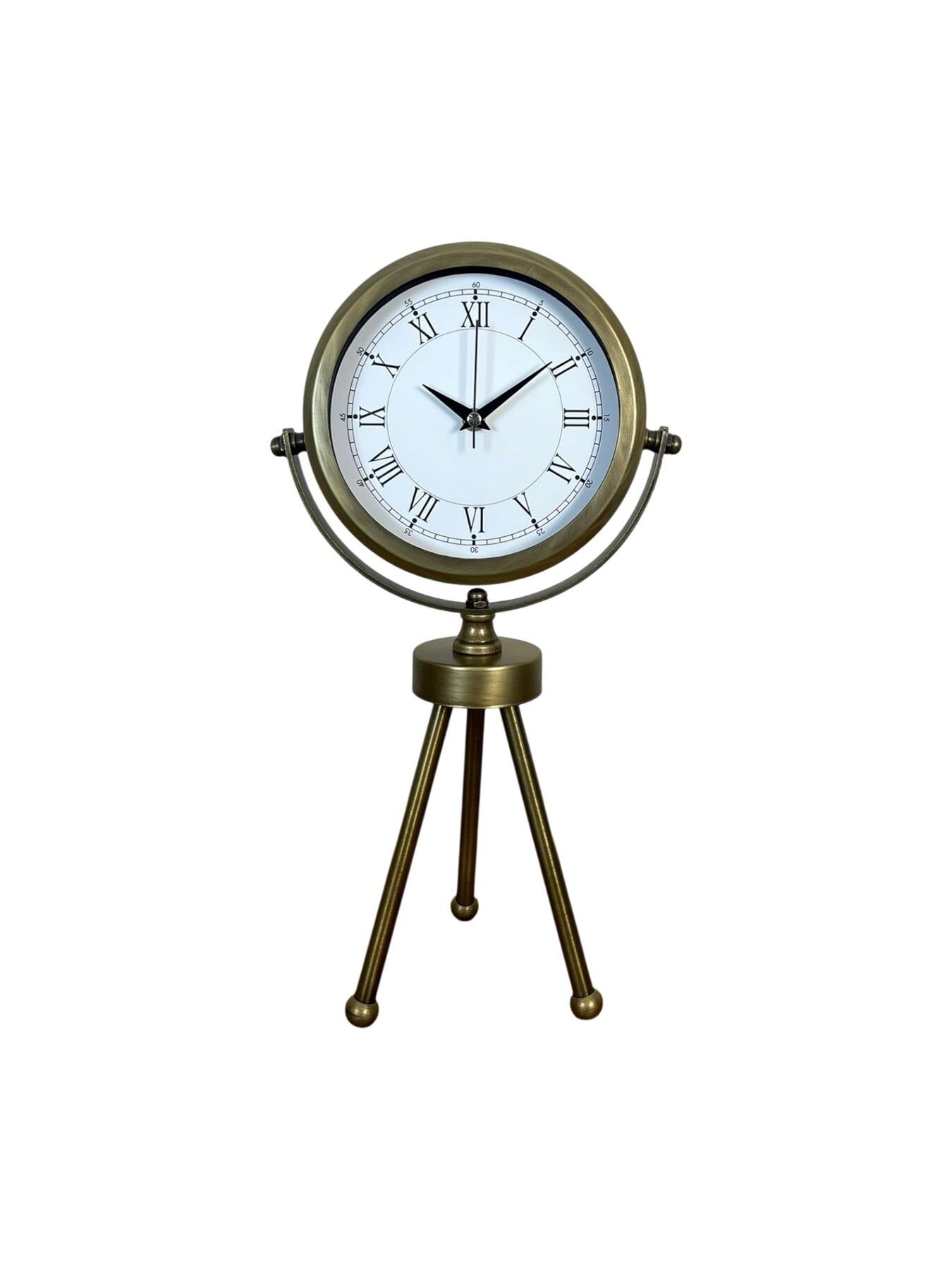 Şıklığı ve zarafeti bir araya getiren Eskitme Üç Ayaklı Metal Masa Saati, modern ve klasik dekorasyon tarzlarına uyum sağlayan özel bir tasarıma sahiptir. Tamamen metal gövde ve eskitme kaplama yüzeyi ile bulunduğu ortama lüks bir dokunuş katarken, üç ayaklı sağlam tripod standı sayesinde hem dengeli hem de dekoratif bir duruş sunar.