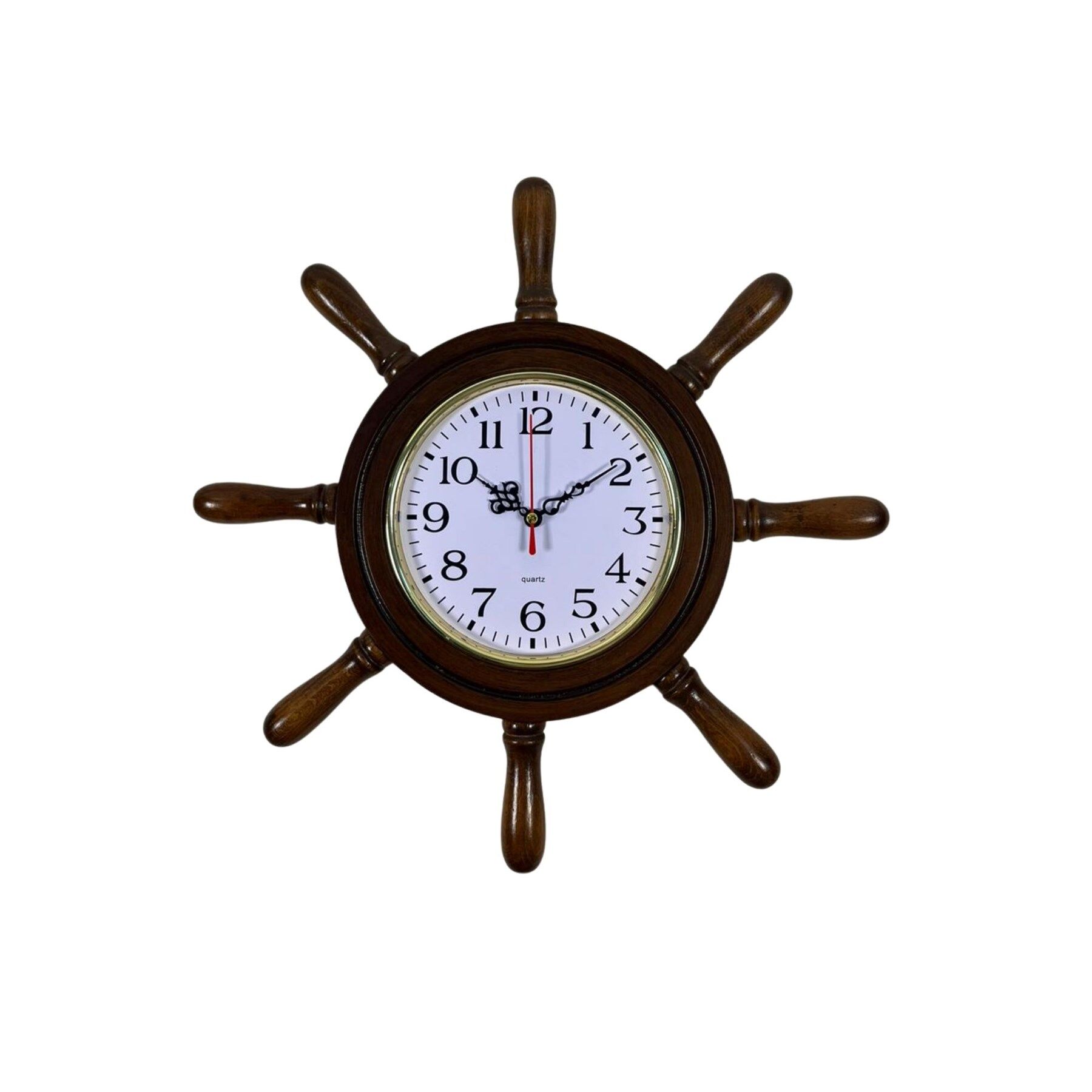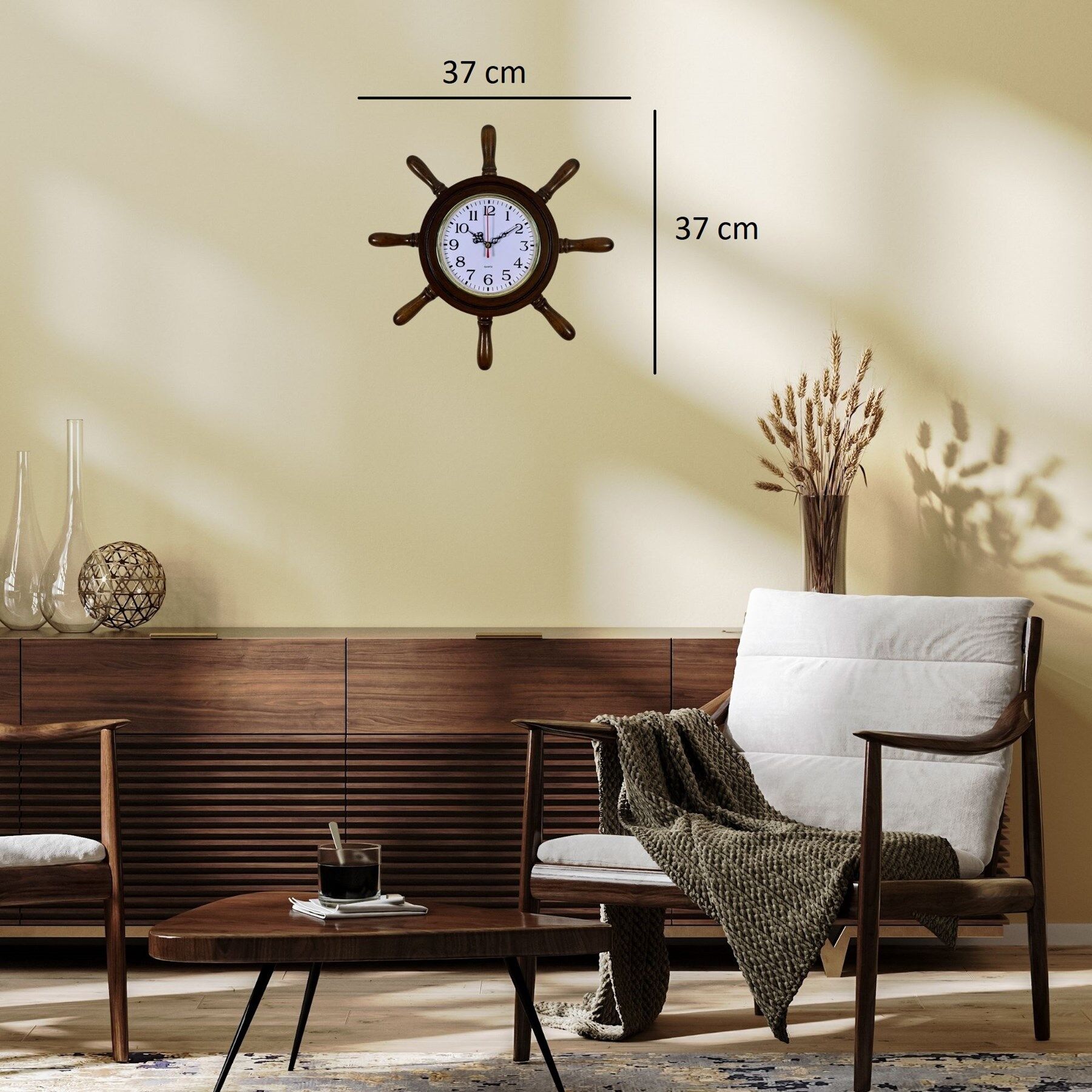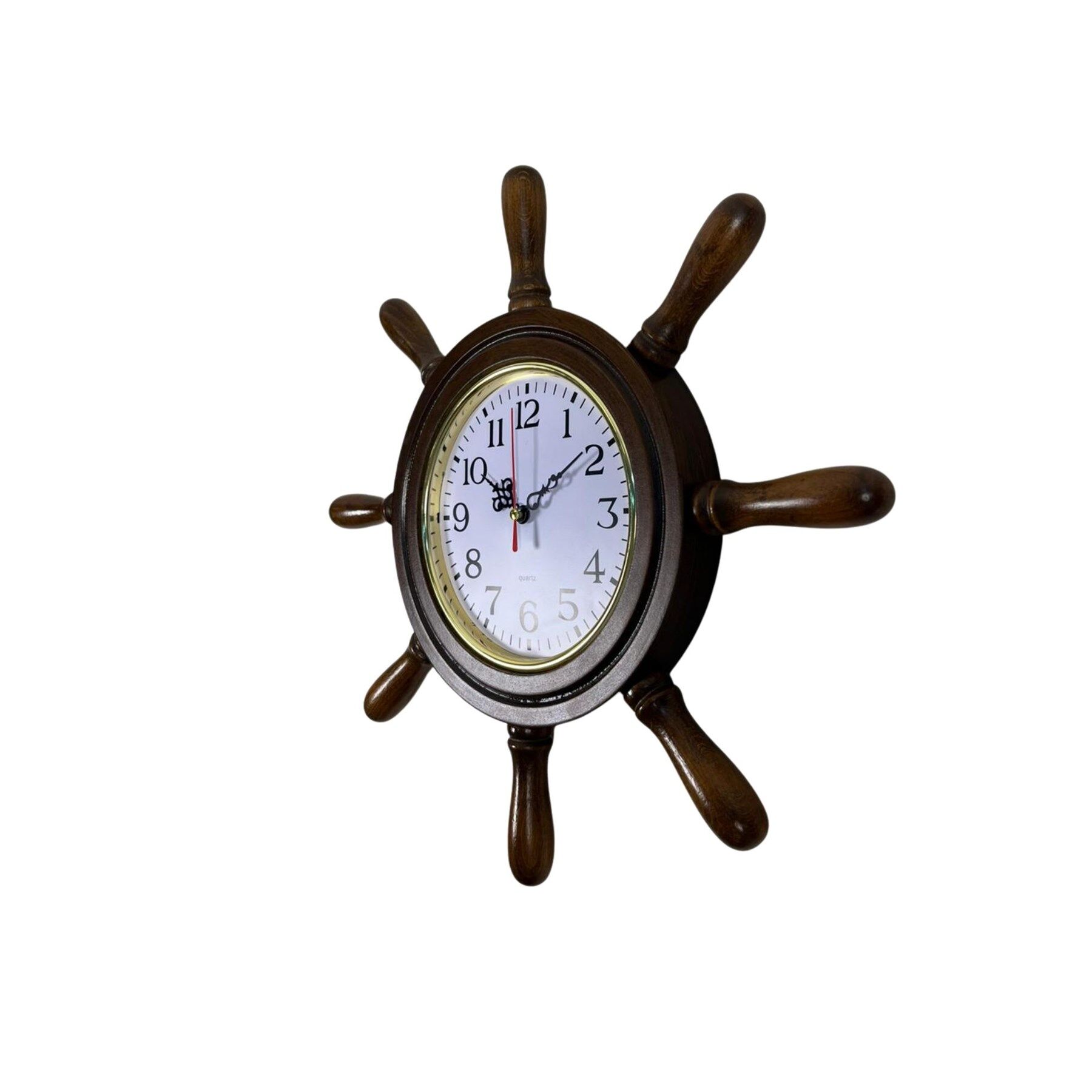 Saatin etrafında bulunan dümen kolları (kavelalar), gerçek bir gemi dümenini andıran detaylı bir tasarıma sahiptir. Bu kavelalar 8 cm uzunluğunda olup saatin marin karakterini güçlendiren estetik bir görünüm sunar. Saat kısmının çapı ise 37 cm olup duvar üzerinde dengeli ve dikkat çekici bir ölçü sunar.