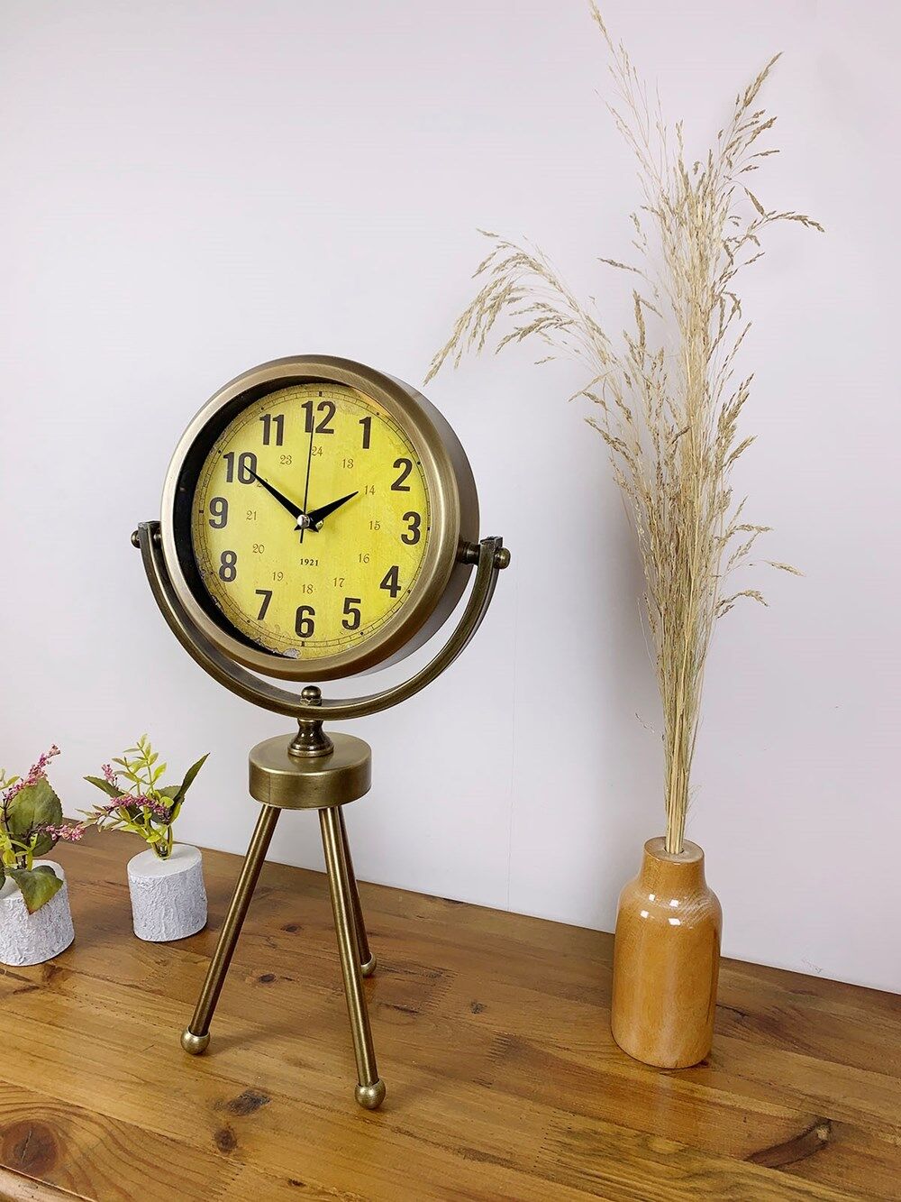 Eskitme Metal Mini Tripod Vira Masa Saati 45×26 cm