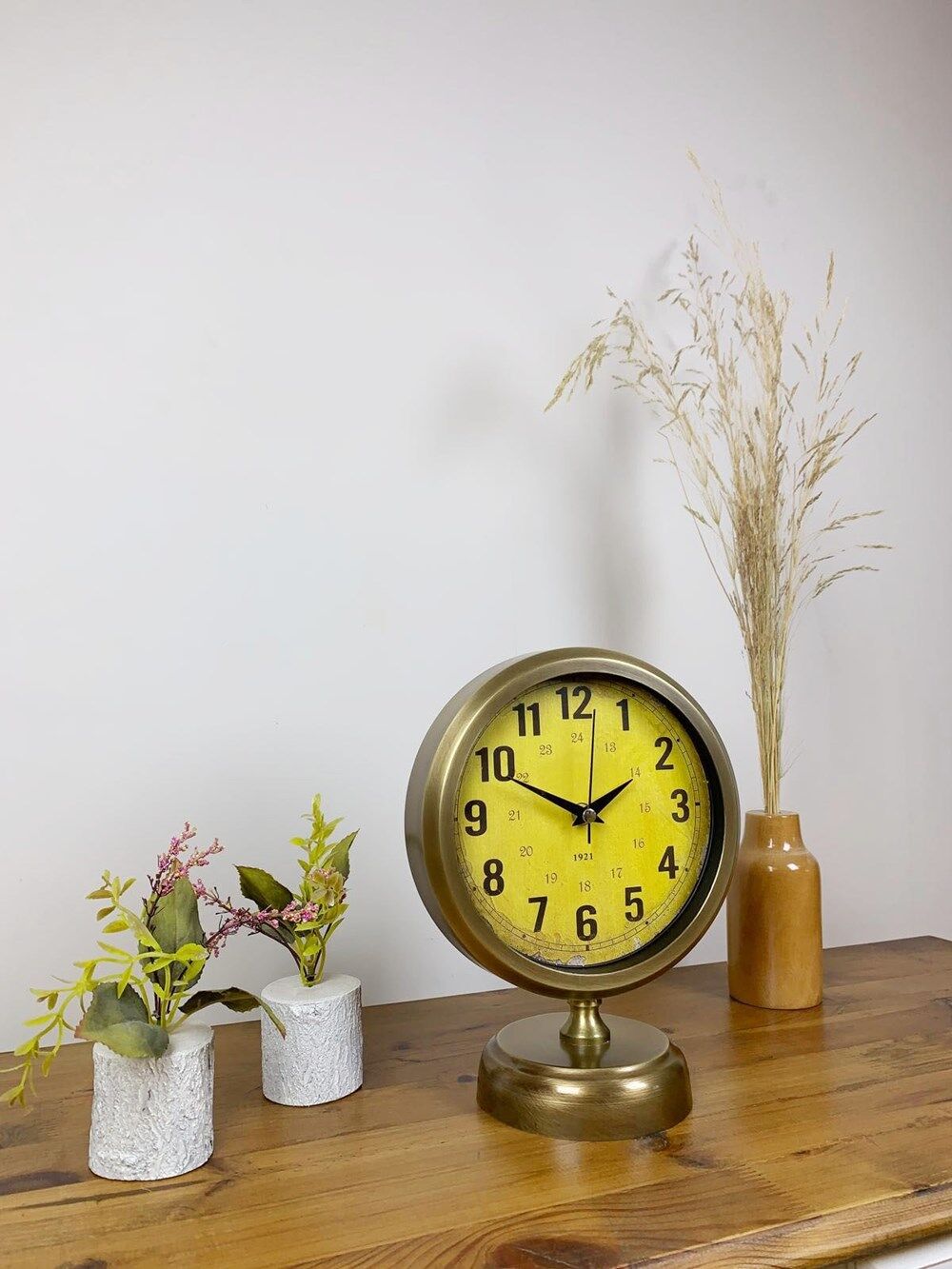 Şık ve modern tasarımıyla dikkat çeken eskitme kaplama masa saatimiz, sessiz akar saniye mekanizmasıyla konforlu bir kullanım sunar. Gerçek cam koruma paneli sayesinde uzun ömürlü ve dayanıklıdır. Estetik görünümüyle hem ev hem de iş yerleri için ideal bir dekoratif üründür.