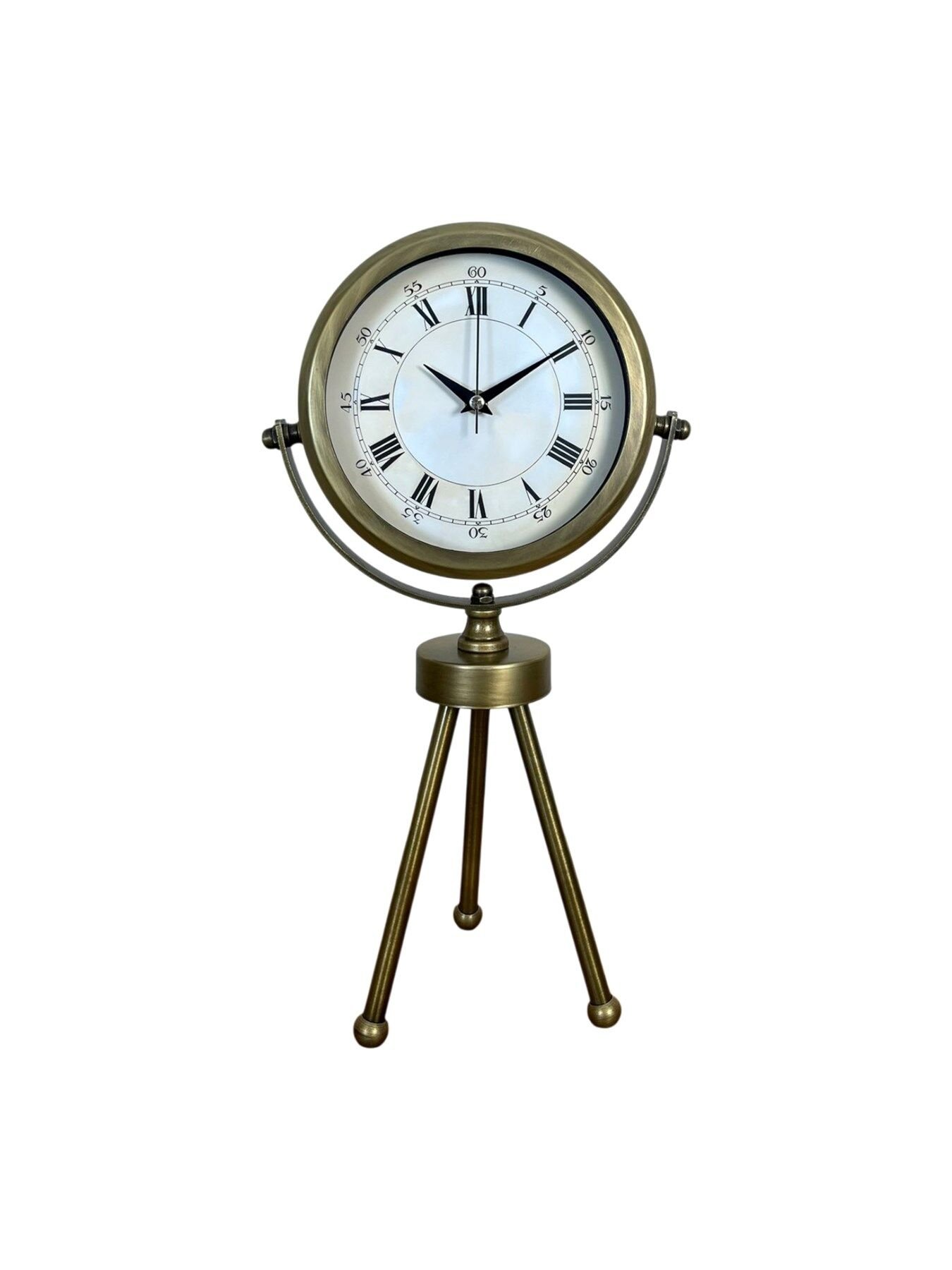 Eskitme Roma Rakamlı Tripod Üç Ayaklı Metal Masa Saati