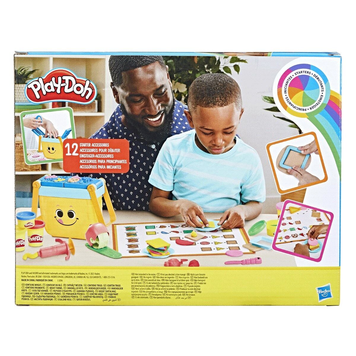 İçindekiler: 4 şekil kesici, uğur böceği damgası, elma şeklinde yuvarlanabilen damga, 2 silindir, süsleme aracı, bıçak, 2 tabak, 4 kutu 56 gram ve 2 kutu 28 gram Play-Doh Marka Oyun Hamuru (toplam 280 g). Uyarılar: 3 yaş ve üzeri içindir.