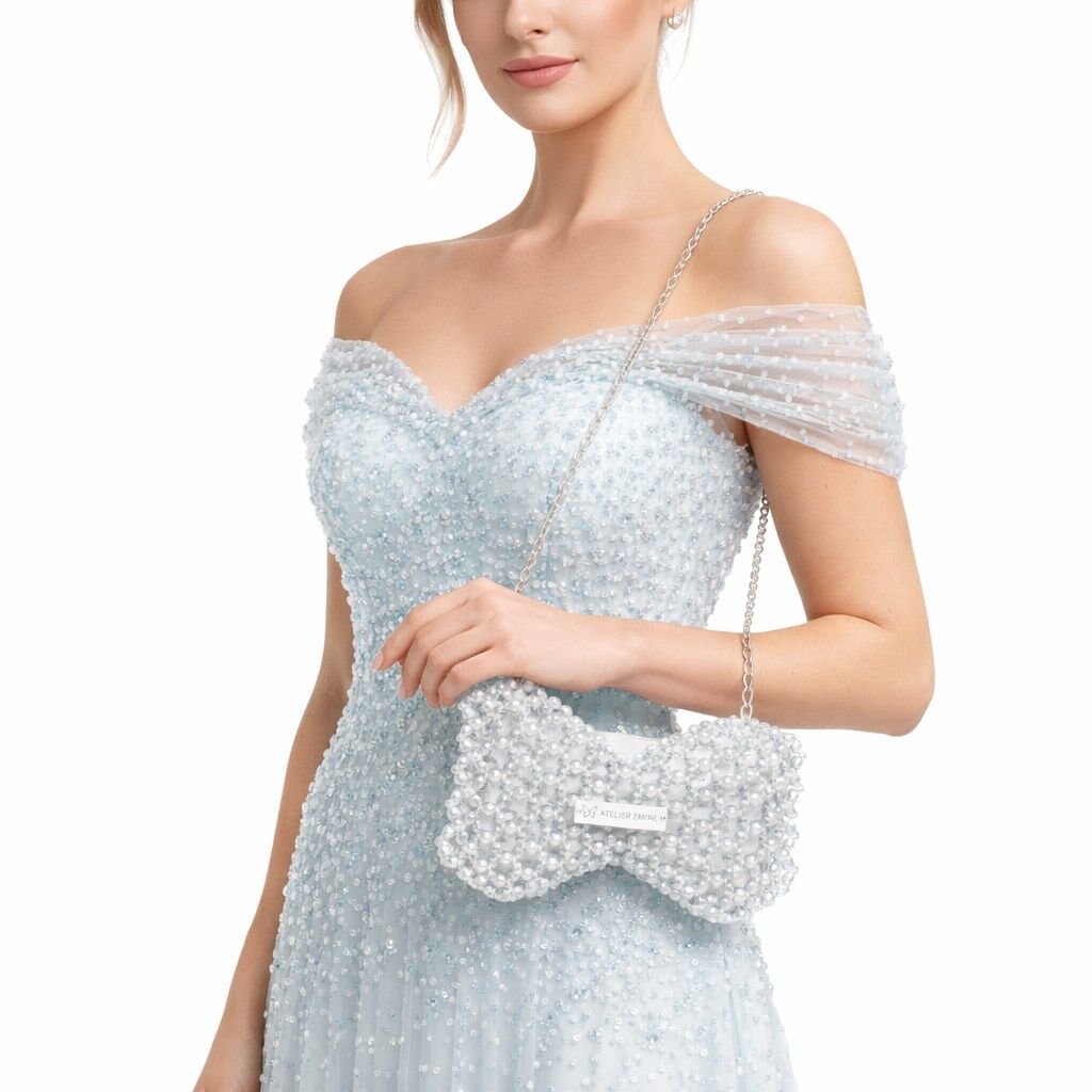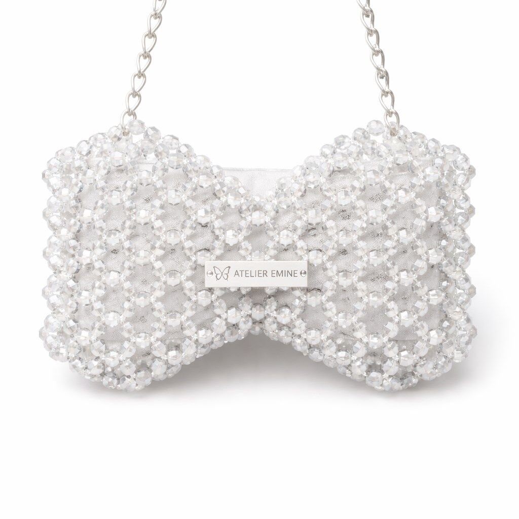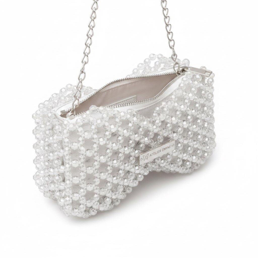 Atelier Emine’in Crystal Gelato Couture serisine ait Fresco Opale, 8 mm optik sınıfı kristal boncukların yüksek dayanımlı misina ile örülmesiyle tamamen el işçiliğiyle üretilmiş, fiyonk formunda heykelsi bir mini çanta modelidir.