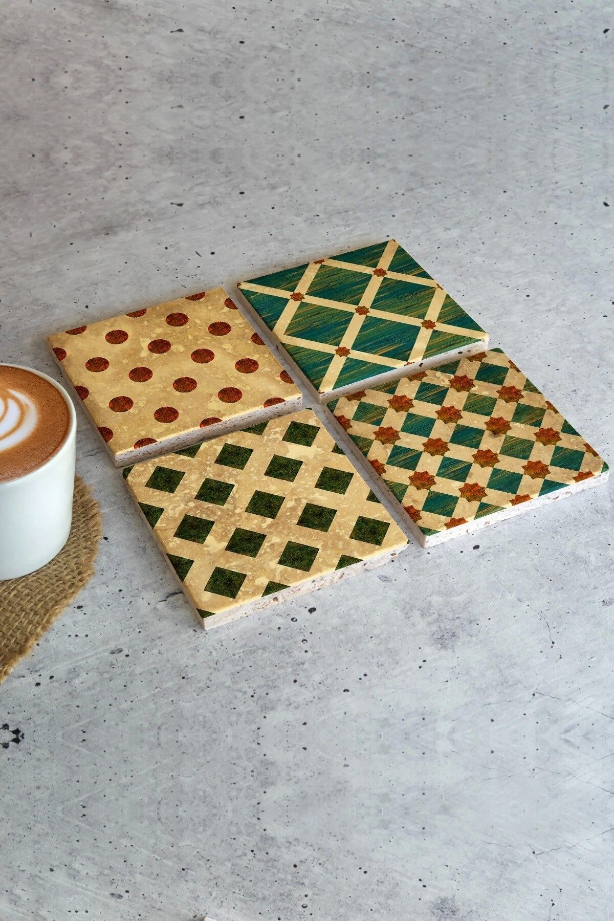 Geometrik Şekiller Taş Bardak Altlığı y_ZHT007170