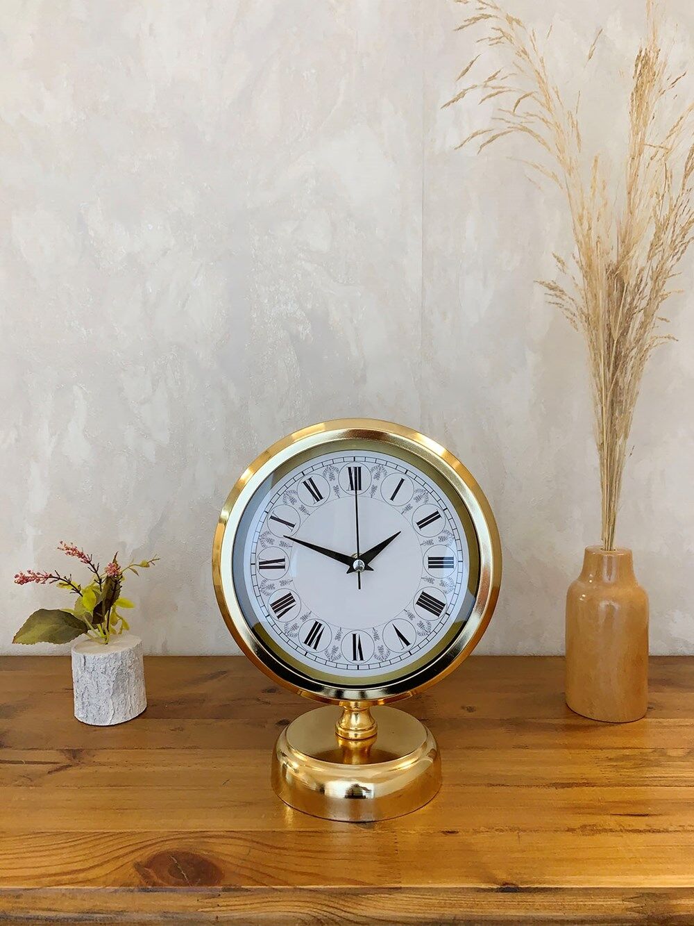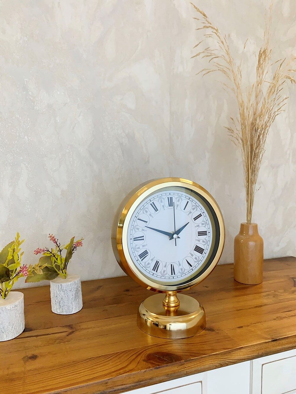 Gold Metal Desenli Roma Rakamlı Masa Saati