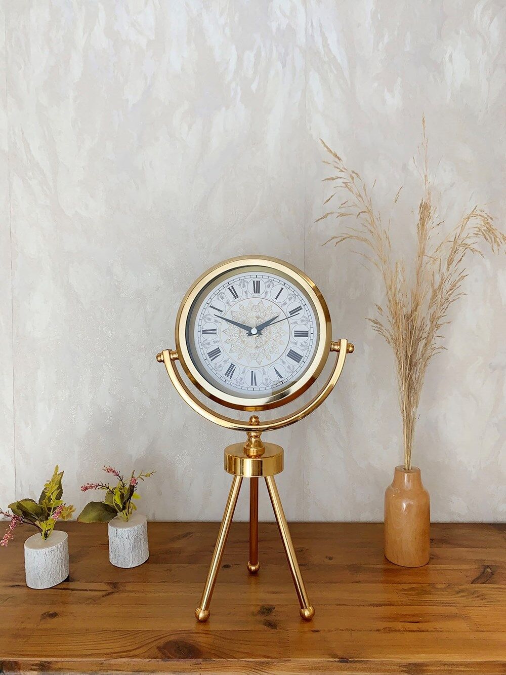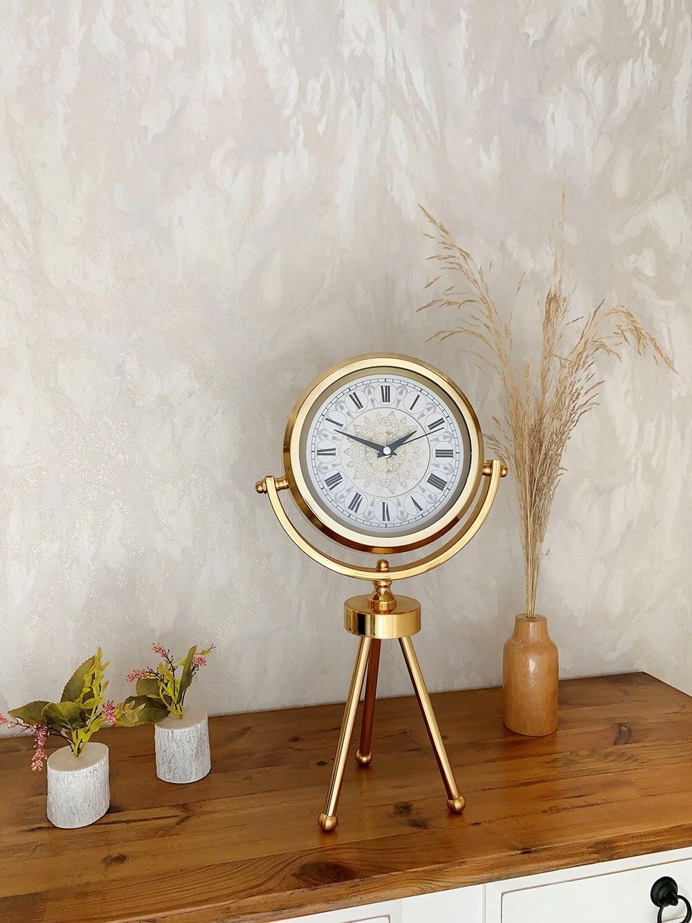 Gold Metal Mini Tripod Çini Desenli Roma Rakamı Masa Saati 45×26 cm