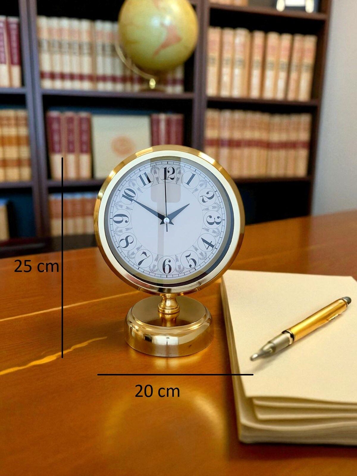 Klasik estetiği modern detaylarla birleştiren GOLD 25 x 20 cm masa saati, yaşam alanlarınıza sofistike bir dokunuş katmak için tasarlandı. Parlak gold metal gövdesi ve zarif kadran yapısıyla hem dekoratif hem de işlevsel bir masa saati arayanlar için ideal bir seçenektir. Ofis masalarından salon konsollarına, çalışma odalarından vitrinlere kadar her ortamda dikkat çeken prestijli bir görünüm sunar.