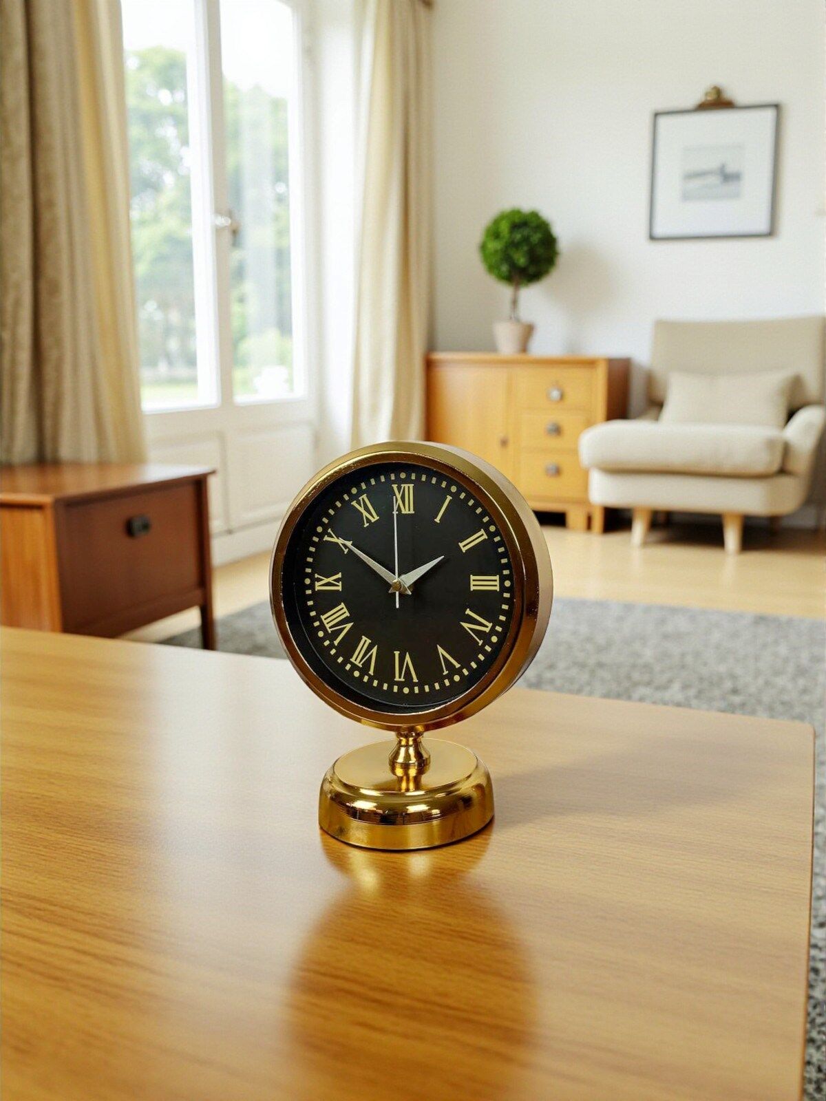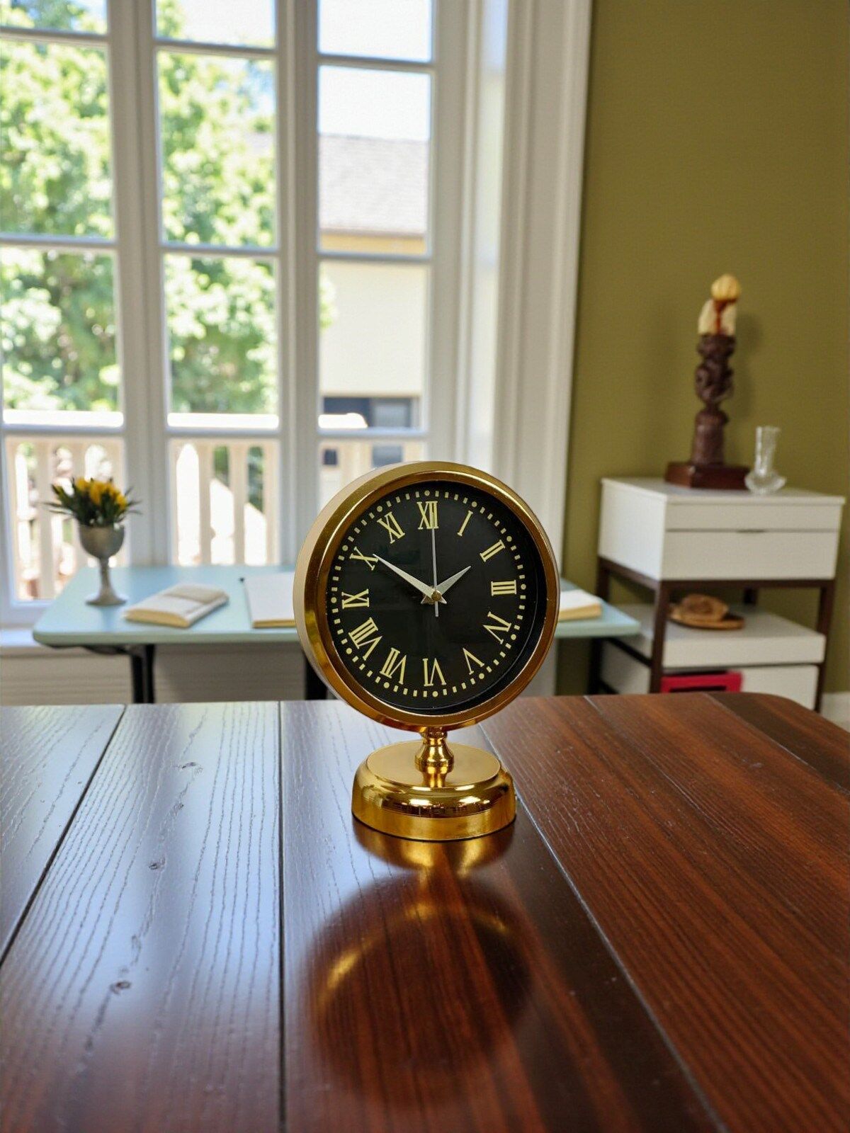Gold metal tabanı sayesinde masa üzerinde dengeli ve sağlam bir şekilde durur. Hem dekoratif obje hem de fonksiyonel bir zaman göstergesi olarak uzun yıllar sorunsuz kullanım sağlar. Şık tasarımı sayesinde özel günlerde hediye olarak da tercih edilebilecek prestijli bir üründür.