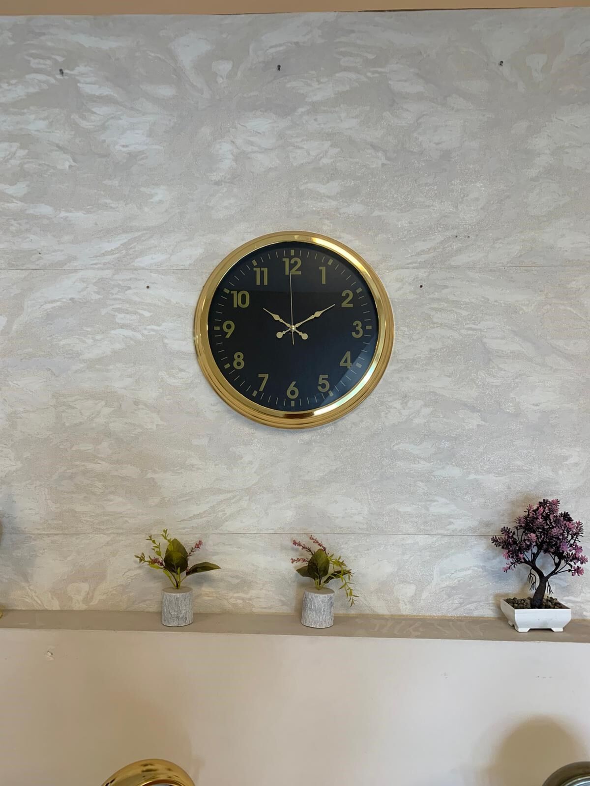 Gold rengin siyah kadranla buluştuğu bu elegan tasarım, bulunduğu mekâna anında değer katar ve dekorasyonunuzu tamamlayan şık bir duvar objesine dönüşür. Hem büyük hem de dikkat çekici olduğu için duvarınızda tek başına bile etkileyici bir dekor ürünü olarak sergilenebilir.