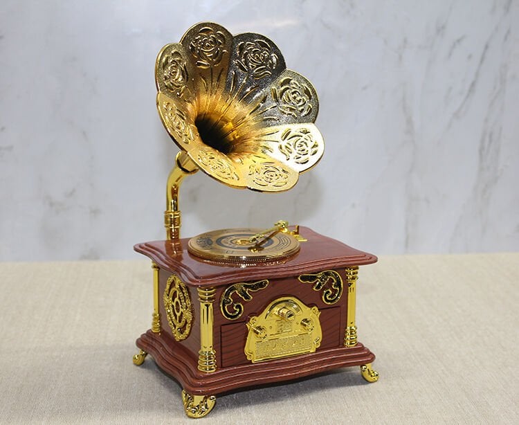 GRAMOFON MÜZİK KUTUSU KAHVERENGİÜrün ÖzellikleriGramofon Müzik Kutusu Kahverengi, nostaljik tasarımı ve zarif detaylarıyla dekoratif bir müzik kutusudur. Kahverengi ahşap görünümlü gövdesi ve altın renkli işlemeleriyle dikkat çeker. Mekanik kurma sistemi sayesinde pille çalışmaz ve klasik bir melodi çalar. Dekoratif amaçlı kullanılabileceği gibi hediye olarak da tercih edilebilir.Paket İçeriği1 Adet Gramofon Müzik Kutusu