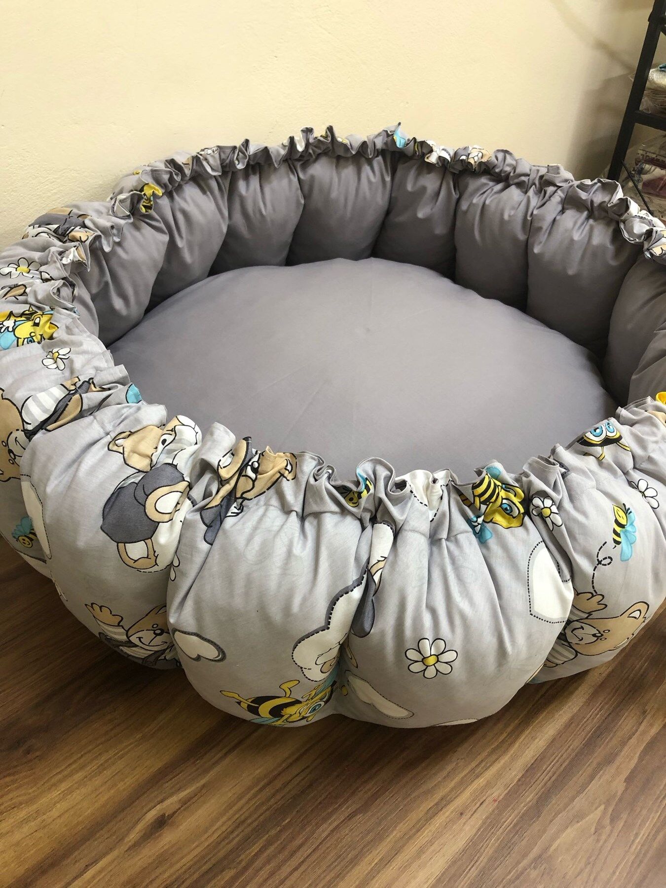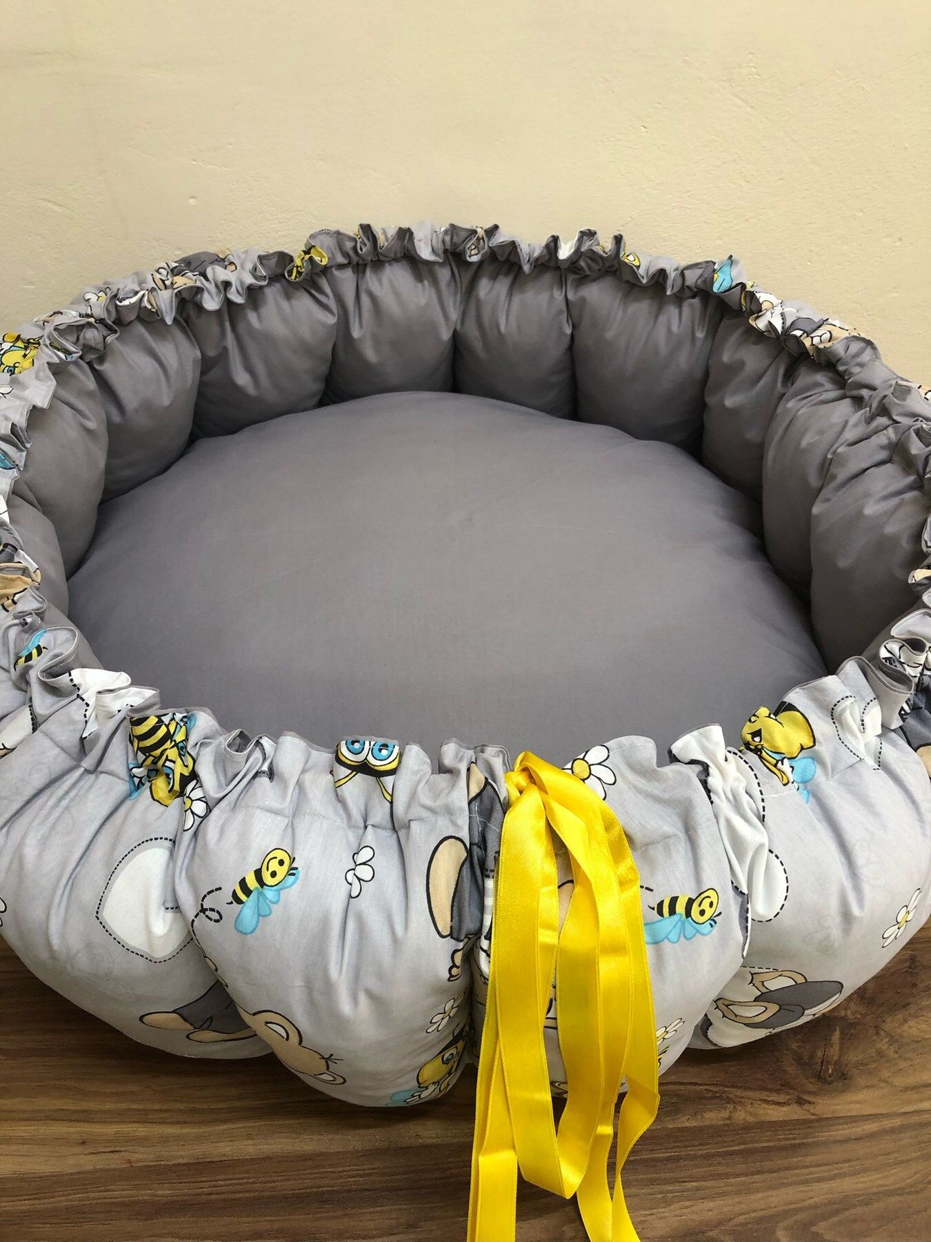 GRİ-AYICIK DESENLİ BEBEK YATAĞI , OYUN MİNDERİ