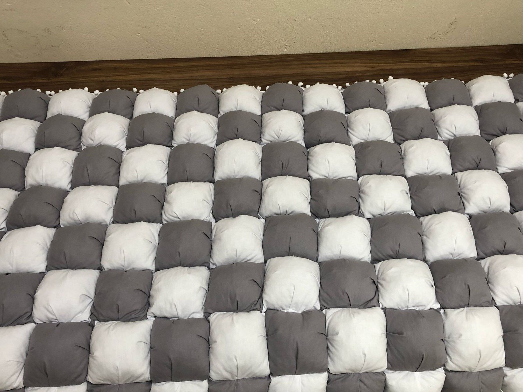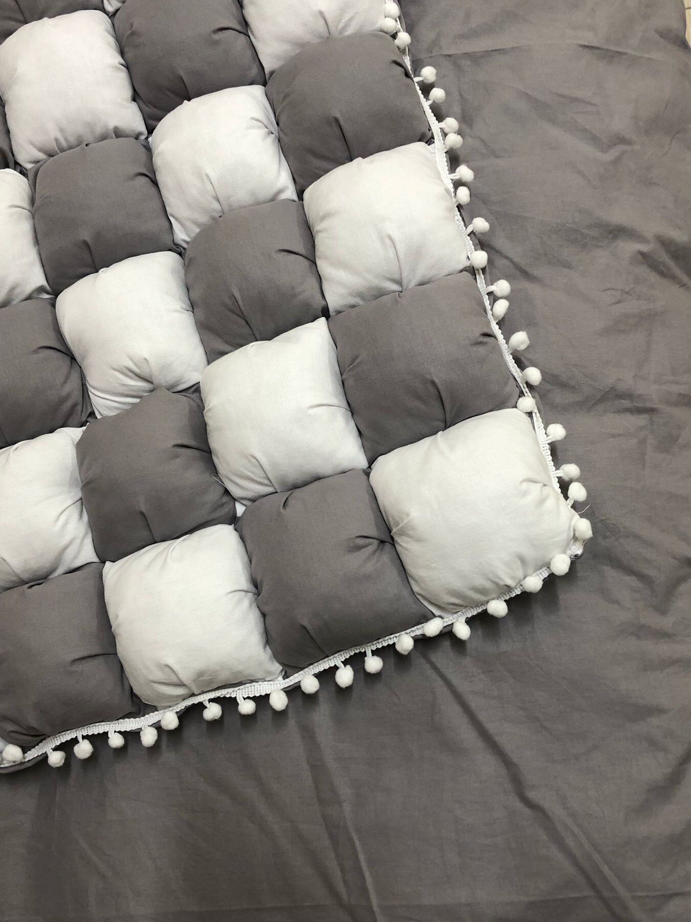 GRİ-BEYAZ 40 YAMA BEBEK YORGANI , BEBEK MİNDERİ