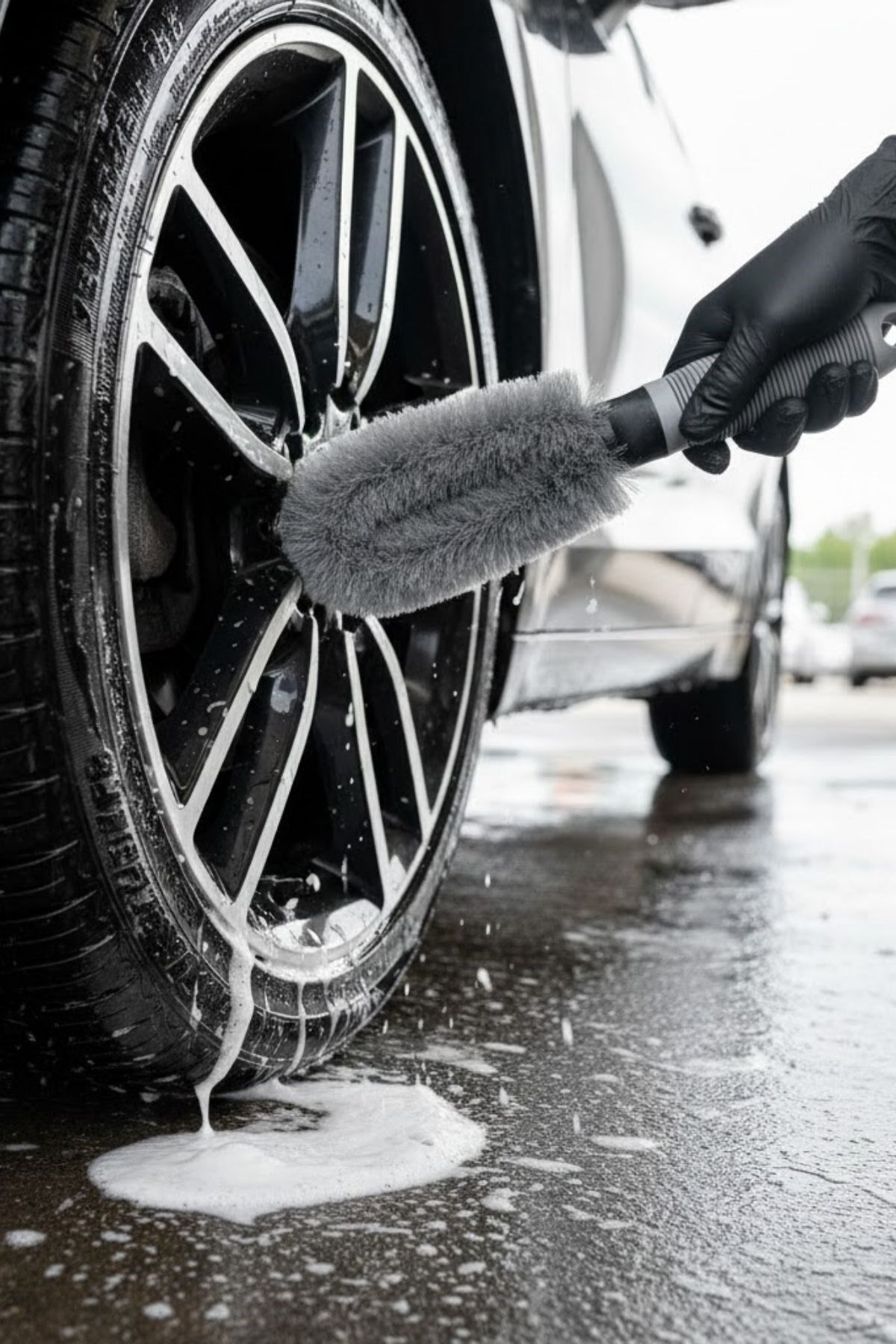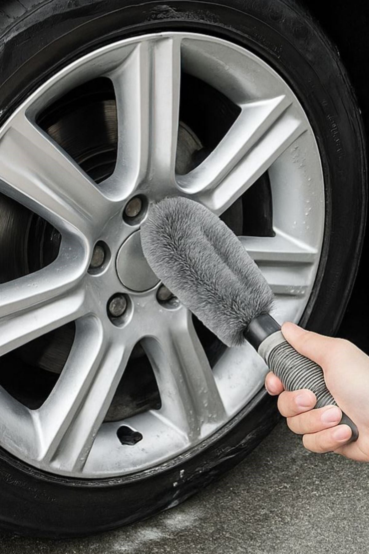 Gri Oto Jant Temizleme Fırçası – Ergonomik Saplı, Lastik ve Jant Detay Temizliği İçin Güçlü Kıllı Fırça