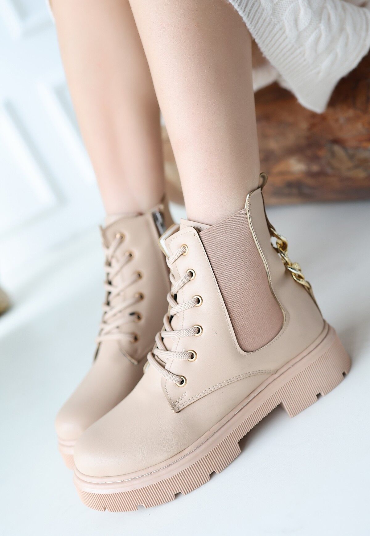 Detay : Topuklu Yandan Fermuarlı Bağcıklı Bot