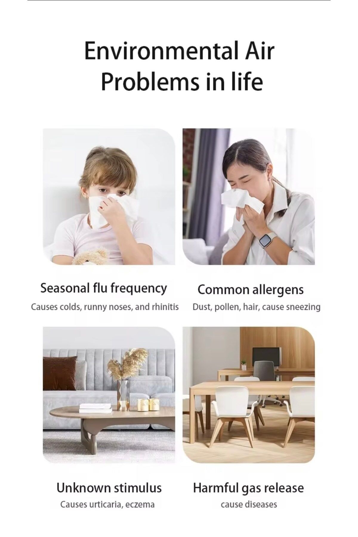 Hava Temizleyici – 4 Kademeli Hız, Sessiz Çalışma, Zaman Ayarı, Çocuk Kilidi