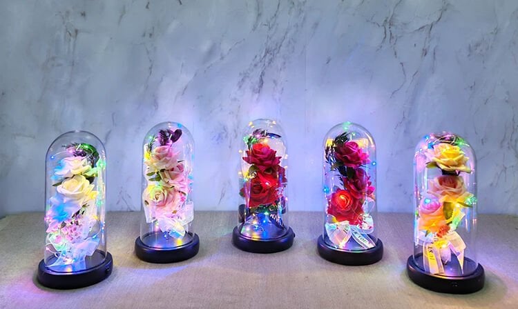 1 adet Işıklı Müzikli Cam Fanus İçinde Romantik Gül
