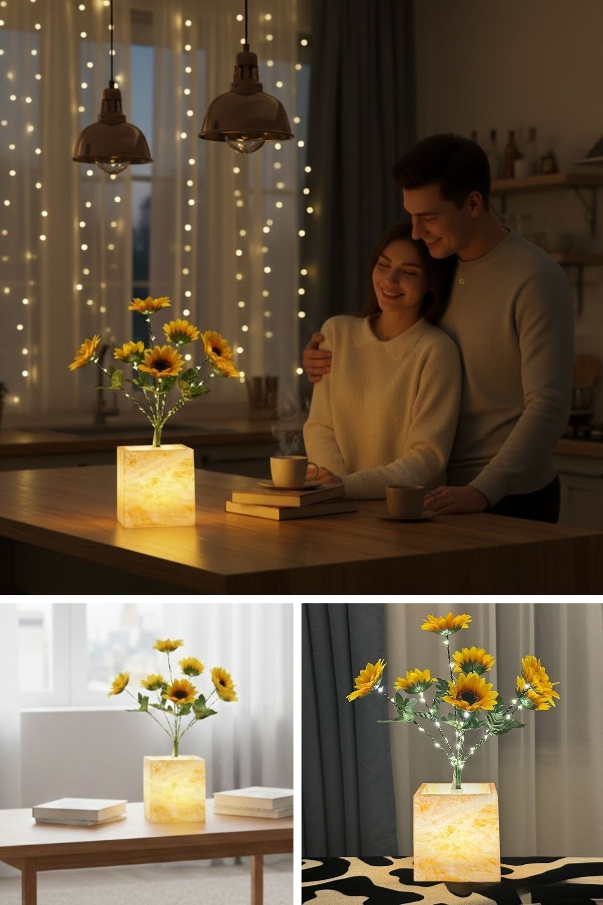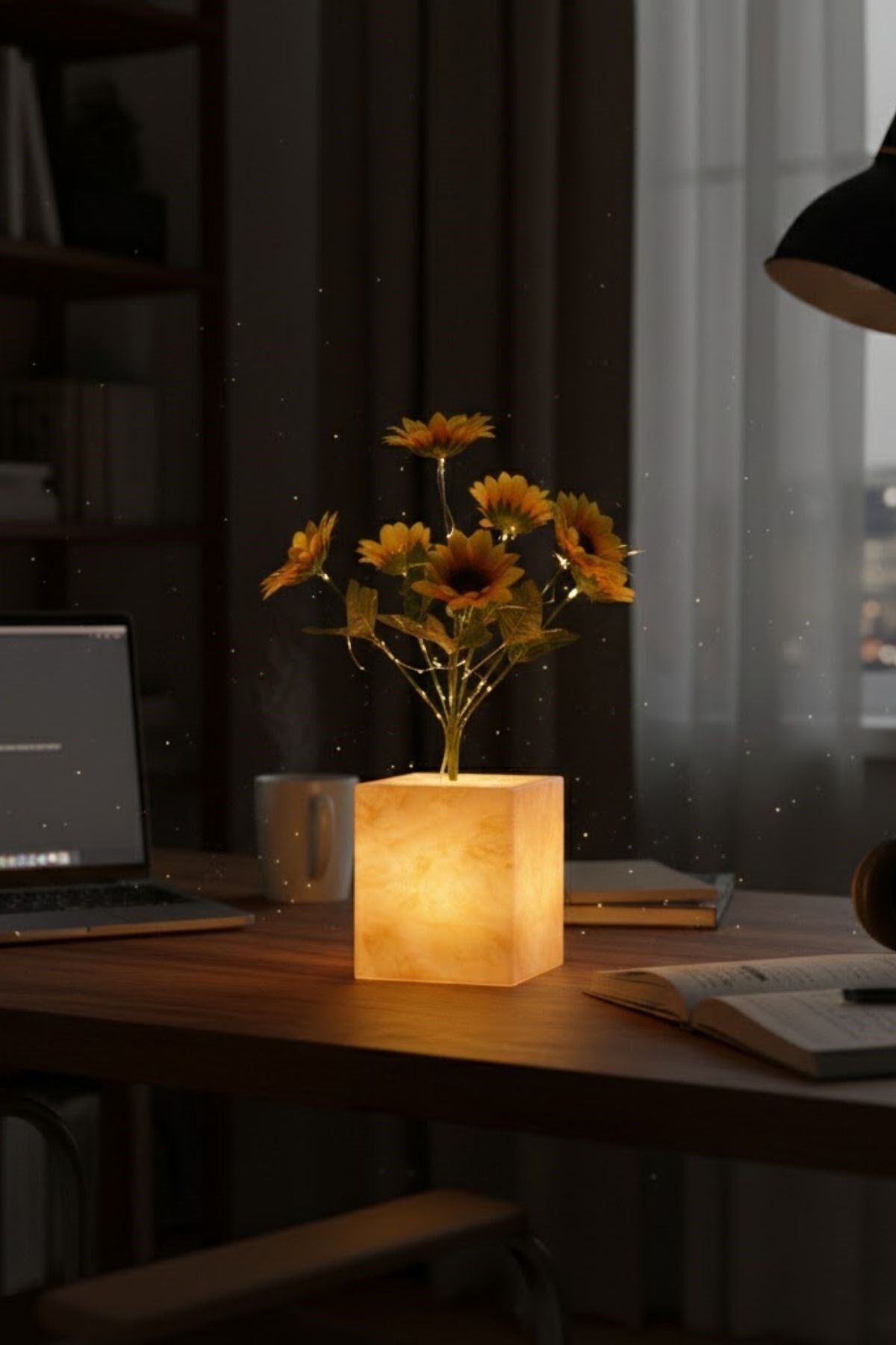 Işıklı Yapay Çiçek – Sarı Saksılı LED Dekoratif Bitki, Masaüstü ve Ev Ofis Aydınlatmalı Süs Bitkisi