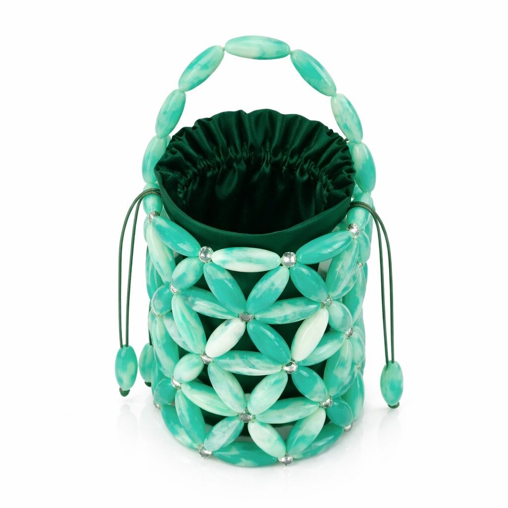 Atelier Emine’in Creamstone Couture serisine ait Jade Emeris, doğal sedef (mother-of-pearl) modüllerin, yüksek mukavemetli şeffaf misina (monofilament) sistemleri ile tek tek örülmesiyle üretilmiş; referans çanta kategorisinde konumlanan, ileri seviye el işçiliği ve mühendislik hassasiyeti gerektiren premium bir tasarımdır.