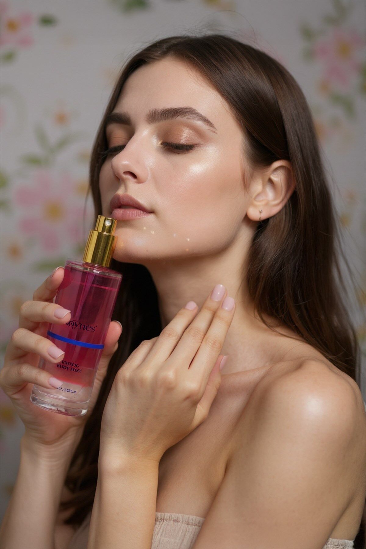 Egzotik gül ve egzotik meyvelerin eşsiz karışımı ile zenginleştirilmiş, kadınlara özel vücut spreyi.