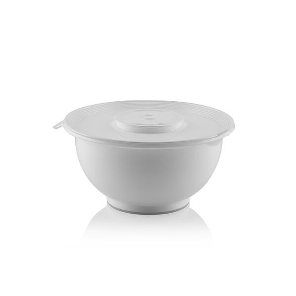 Kapaklı Büyük Mikser Tası, mutfakta hamur işlerinden sos hazırlıklarına kadar tüm çırpma ve karıştırma işlemlerini zahmetsiz ve temiz bir şekilde yapmanız için tasarlanmıştır. Şık beyaz gövde yapısı ile mutfak dekorasyonunuza uyum sağlayan bu tas, geniş iç hacmi sayesinde yüksek miktardaki malzemeleri dökülme riski olmadan karıştırmanıza olanak tanır. Ürünün en işlevsel özelliği olan özel kapak sistemi, orta kısmındaki çıkarılabilir bölme sayesinde mikser uçlarının kaba girmesini sağlar; böylece çırpma esnasında etrafa sıvı sıçramasını tamamen engeller. İşlem bittikten sonra orta kapak kapatılarak kap, tam korumalı bir saklama kabı haline dönüşür. Alt kısmında yer alan kaydırmaz taban desteği, hızlı karıştırma işlemlerinde bile kabın tezgah üzerinde sabit kalarak güvenli bir kullanım sunmasını sağlar. Yüksek kaliteli, sağlığa uygun plastik materyalden üretilen bu mikser tası, hem çırpma kabı hem de hazırladığınız gıdaları taze tutan bir muhafaza kabı olarak mutfağınızın en pratik üyelerinden biri olacak.