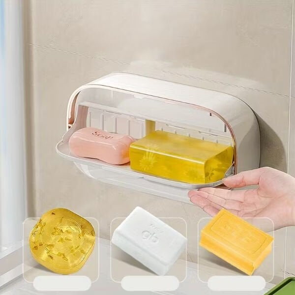 1 adet kapaklı ve drenaj bölmeli duvara monte sabunluk