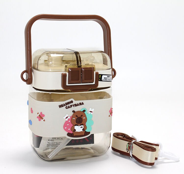 1 Adet Kapibara Desenli Çift Bölmeli Çocuk Matarası