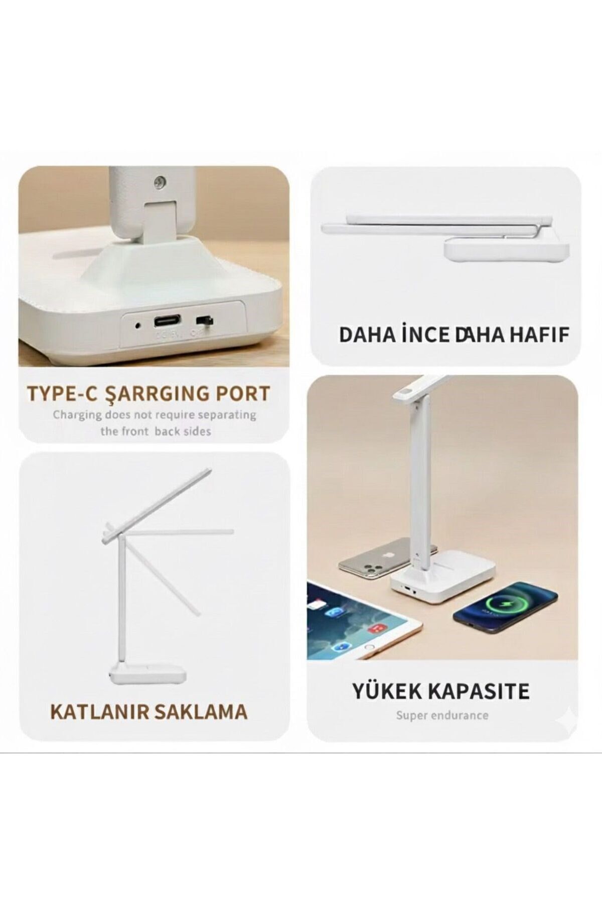 Çalışma alanınıza hem şıklık hem de konfor katan Yenilikçi Akıllı LED Masa Lambası, modern tasarımı ve üstün işlevleriyle verimli bir aydınlatma deneyimi sunar.; Göz dostu ışık teknolojisi sayesinde uzun süreli kullanımda bile gözlerinizi yormaz; ders çalışma, ofis kullanımı, kitap okuma ve tasarım gibi hassas işler için idealdir.; Dokunmatik kontrol paneli ile ışık seviyesini kolayca ayarlayabilir, istediğiniz ortamı zahmetsizce oluşturabilirsiniz.; Katlanabilir yapısı sayesinde minimum yer kaplar, taşınabilir ve kolay saklanabilir formdadır.; Üstelik enerji tasarruflu LED teknolojisi sayesinde düşük güç tüketimi ile maksimum verim sağlar.; ⸻