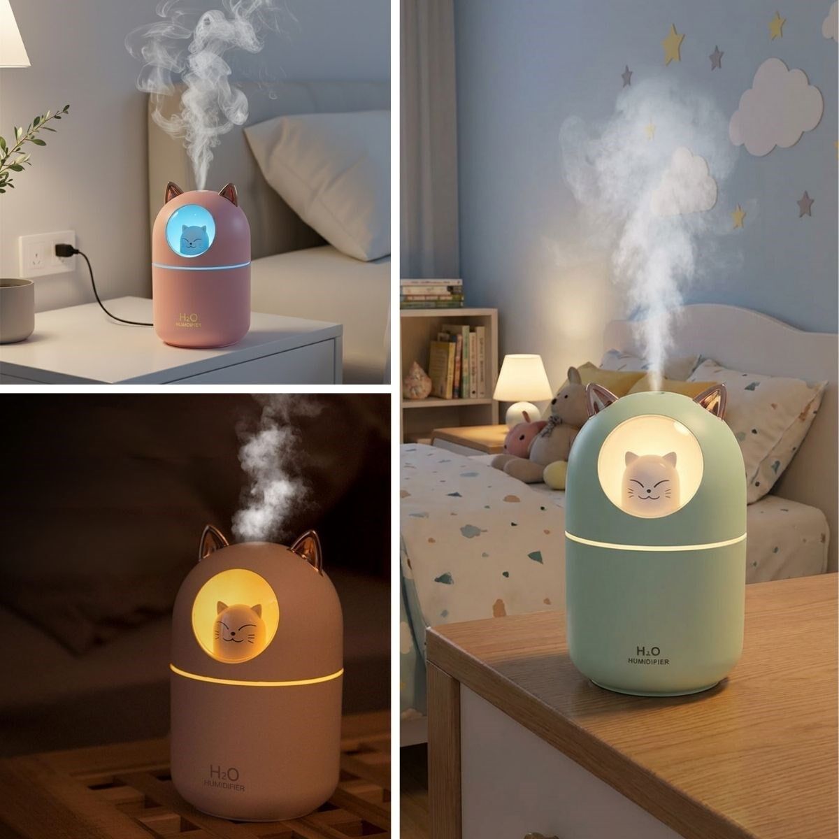 Kompakt ve hafif tasarımı sayesinde yer kaplamaz, kolayca taşınabilir. USB bağlantısı ile pratik kullanım sağlar. Sevimli kedicik figürü ile hem çocuklar hem de hayvan figürlü dekor ürünlerini sevenler için ideal bir hava nemlendirici alternatifidir.