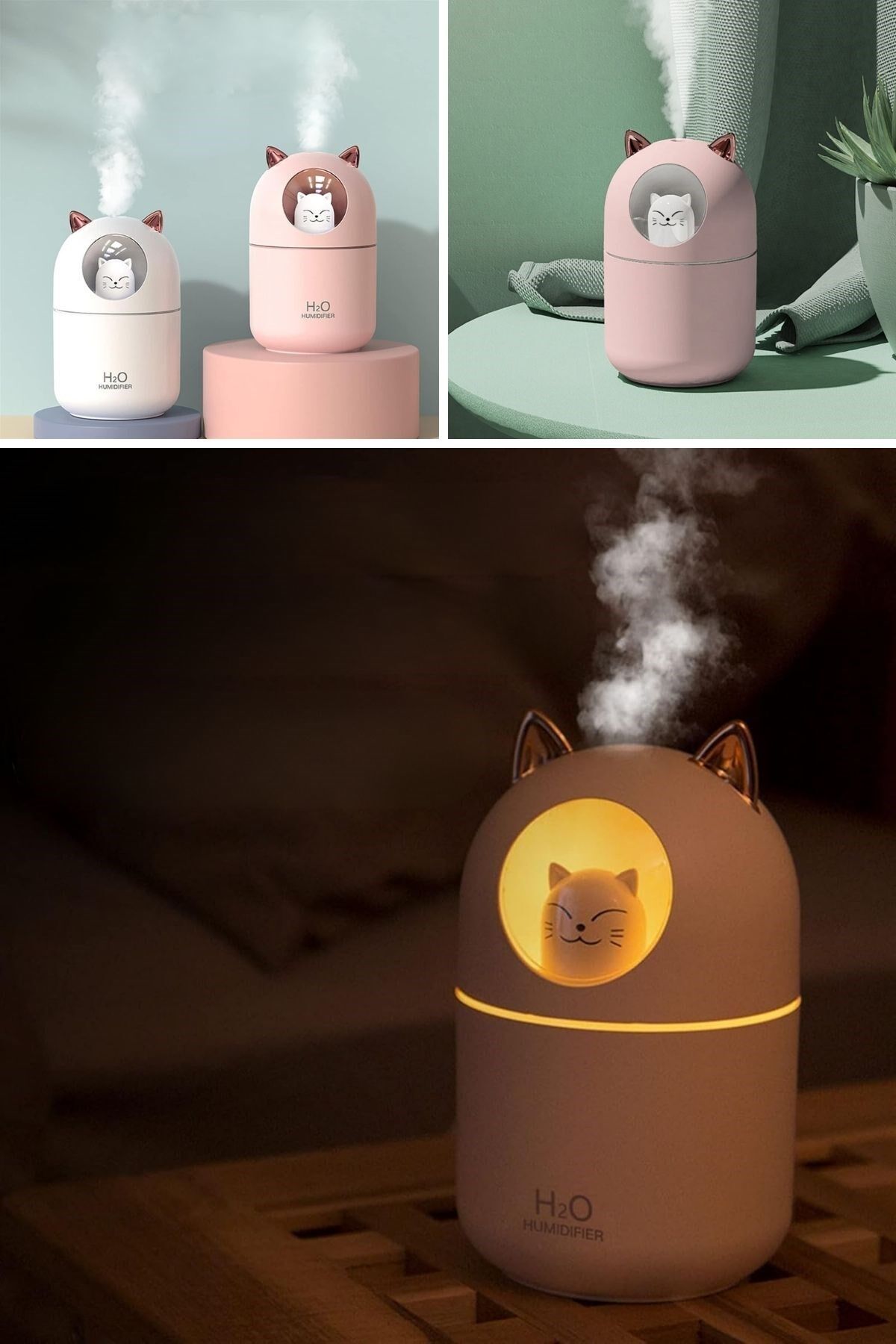 Kedicik Figürlü Hava Nemlendirici – Ultrasonik Soğuk Buhar Makinesi, LED Işıklı Masaüstü Oda Nemlendirici