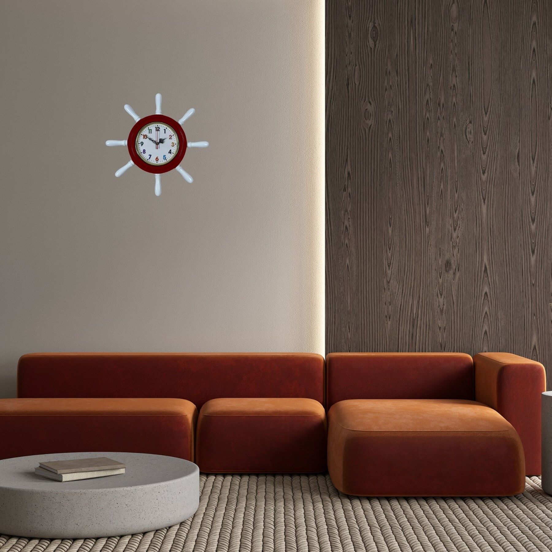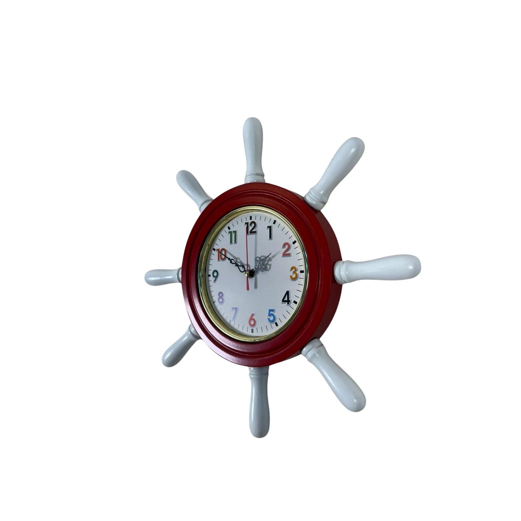 Denizcilik temalı dekorasyonu sevenler için tasarlanan 37 cm Kırmızı Dümen Duvar Saati, yaşam alanlarına enerjik ve dikkat çekici bir görünüm kazandırır. Gemi dümeni formundaki özel tasarımı sayesinde özellikle çocuk odası, genç odası, yazlık evler ve deniz temalı dekorasyonlar için oldukça şık bir dekoratif üründür.