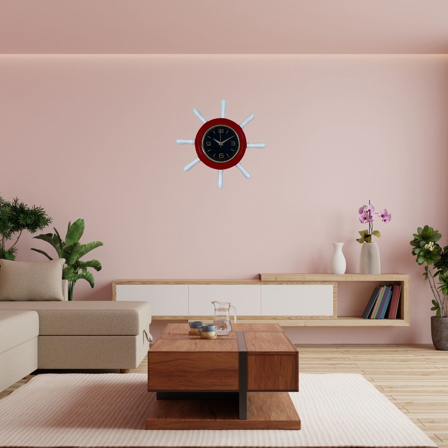 Gemi dümeni formundaki tasarımı sayesinde özellikle deniz temalı dekorasyonlarda, sahil evlerinde, yazlık mekanlarda, restoranlarda, kafelerde, otellerde ve teknelerde oldukça şık bir dekoratif aksesuar olarak kullanılabilir. Modern ve klasik dekorasyon tarzlarıyla uyum sağlayan bu saat, hem zamanı takip etmenizi sağlar hem de duvarlarınıza farklı bir karakter katar.
