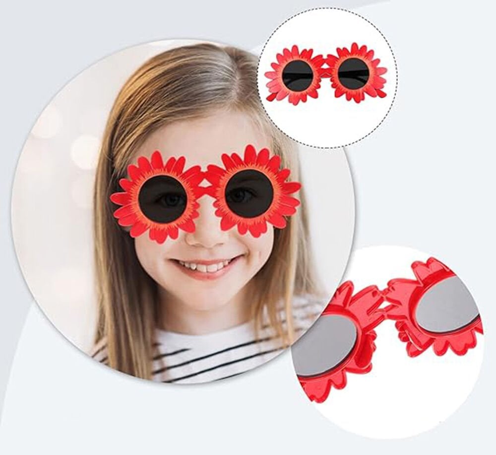 1 Adet Kırmızı Renk Papatya Şekilli Parti Gözlüğü