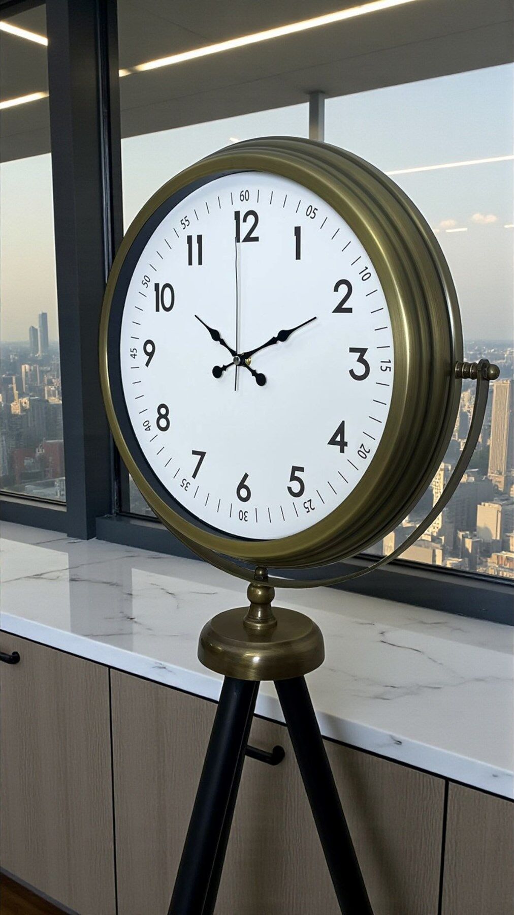Tripod (üç ayaklı) yapısı sayesinde duvar montajına ihtiyaç duymaz. Dilediğiniz alana kolayca yerleştirilebilir ve taşınabilir. Salon köşeleri, ofisler, giriş holleri, otel lobileri, kafe ve restoranlar için dekoratif bir tamamlayıcıdır. Büyük boy yapısı sayesinde yalnızca bir saat değil, aynı zamanda mekânın odak noktası olan dekoratif bir obje görevi görür.