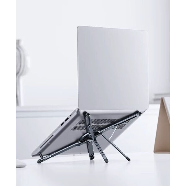Kompakt Manyetik Telefon Tablet Laptop Tutucu, alüminyum alaşımdan üretilmiş sağlam ve dayanıklı yapısıyla günlük kullanımda yüksek performans sunar. Katlanabilir gövdesi, hafif yapısı ve ayarlanabilir açıları sayesinde telefon, tablet ve dizüstü bilgisayarları istenilen pozisyonda sabitleyerek hem konfor hem de ergonomi sağlar. 180° dönebilen manyetik başlık tasarımıyla dikey veya yatay kullanım için güvenli bir tutuş oluşturur. Destek ayakları 45° ve 180° açılabilir yapıdadır ve 75° eğilebilir destek çubuğu cihazın stabil durmasını sağlar.Silikon kaplı temas noktaları, cihaz yüzeyini çizilmelere karşı korurken sabit konumda kaymayı engeller. Çalışma, film izleme, oyun, canlı yayın, toplantı, mutfakta tarif takibi, araç içi kullanım gibi geniş kullanım alanına sahip olmasıyla çok fonksiyonlu bir yardımcıdır. Telefon, tablet ya da laptop kullanımında dik bir açı sağlayarak duruş bozukluklarının önüne geçmeye yardımcı olur. Kompakt tasarımı sayesinde çantada taşınabilir, masaüstünde yer kaplamaz ve her ortamda rahatlıkla kullanılabilir.