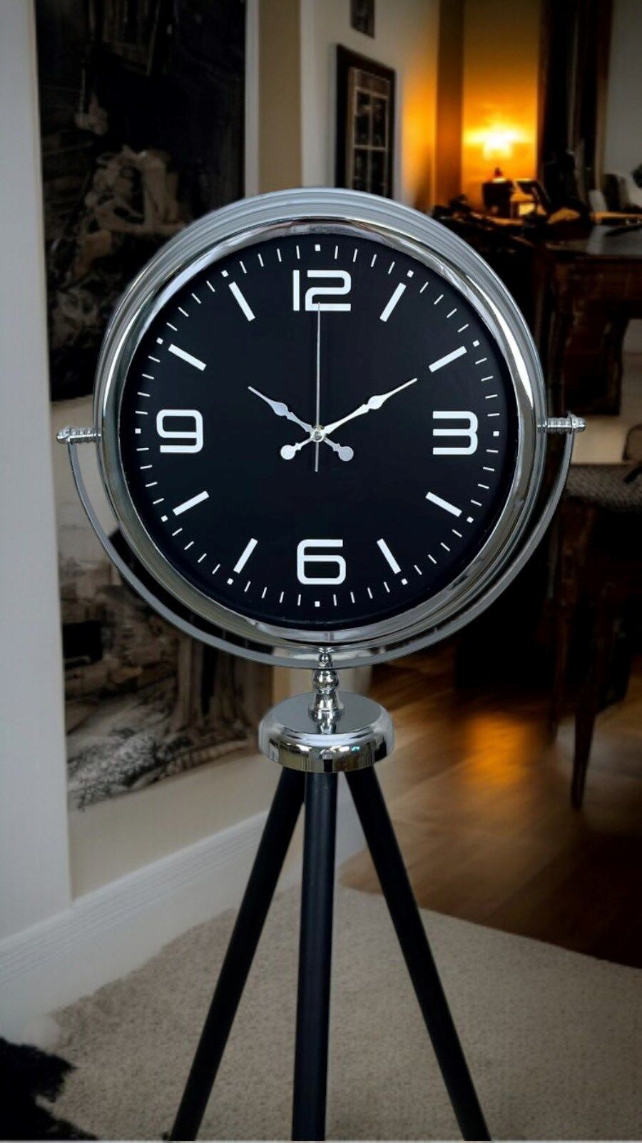 ⏱️ Krom Tripod Ayaklı Dekoratif Saat – 150 × 45 cm (Siyah Kadran)