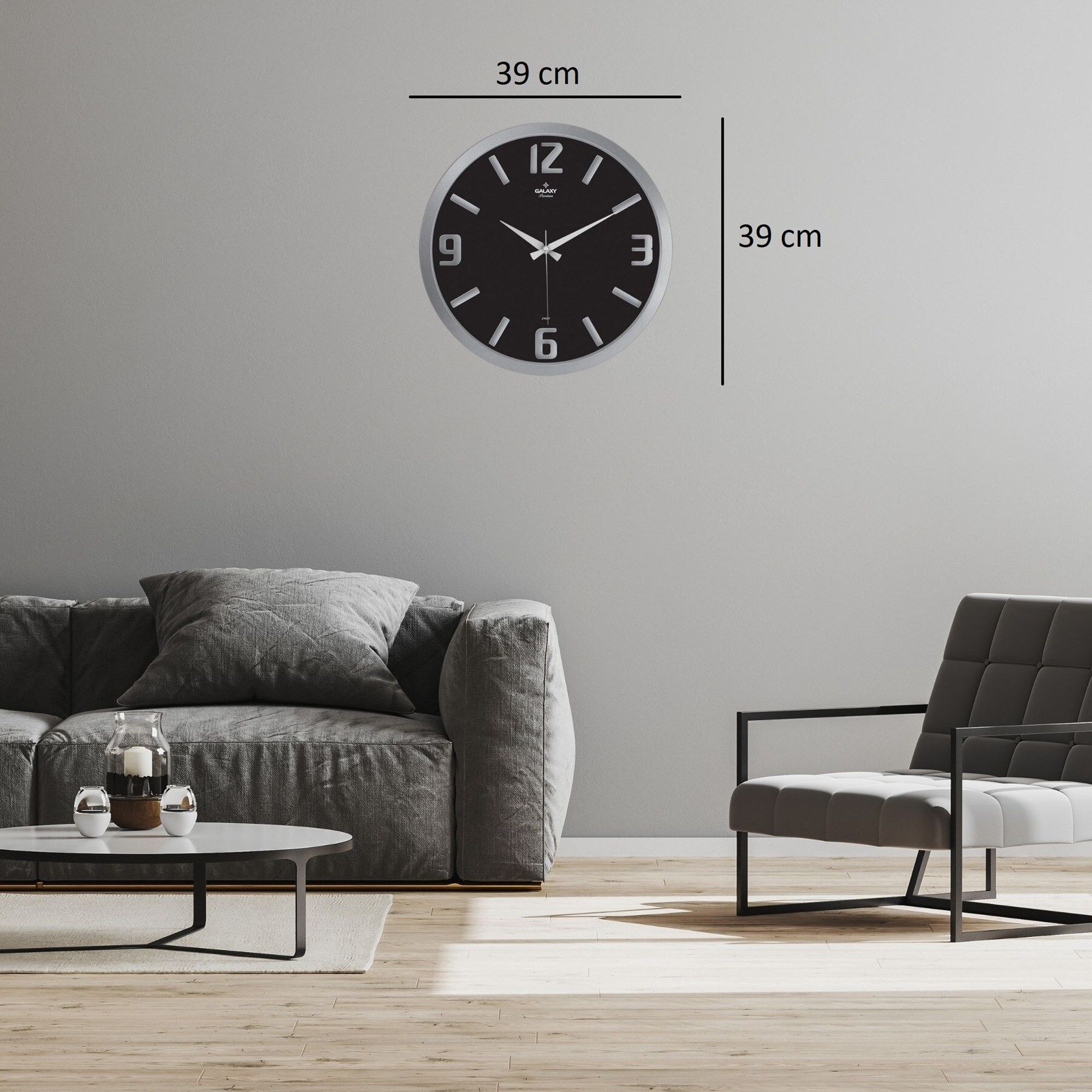 Modern ve şık tasarımıyla öne çıkan 39 cm krom gümüş duvar saati, yaşam alanlarına zarif ve çağdaş bir görünüm kazandırır. Siyah kadranı ve gümüş krom çerçevesi sayesinde güçlü bir kontrast oluşturarak modern dekorasyonlarda dikkat çekici bir detay haline gelir.