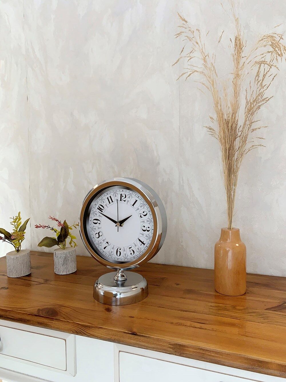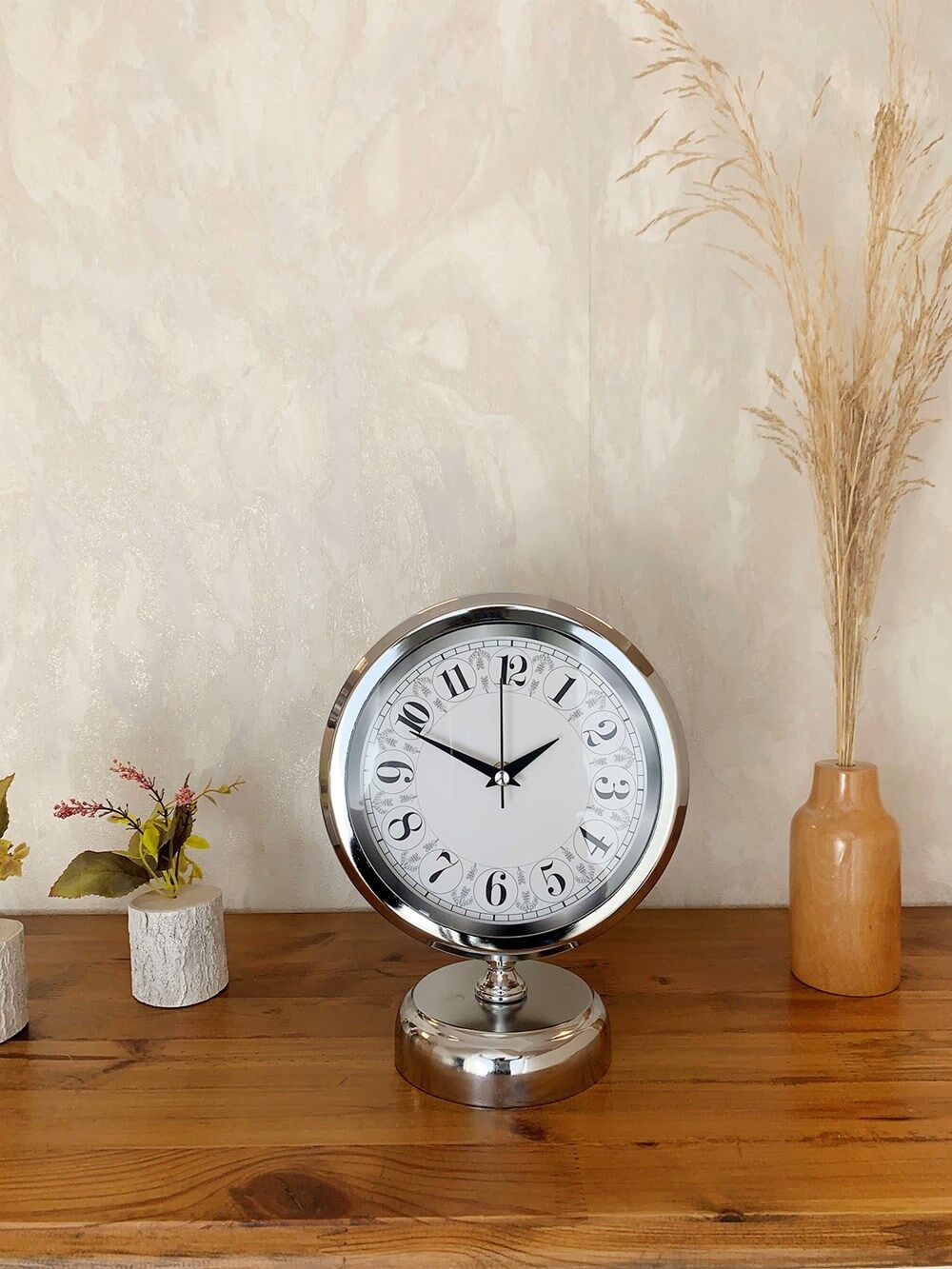 Krom Metal Desenli Masa Saati 25×20 cm