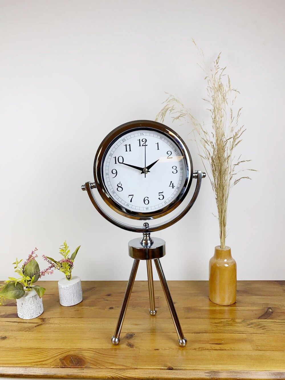 Krom Metal Mini Tripod Dekoratif Masa Saati 45×26 cm