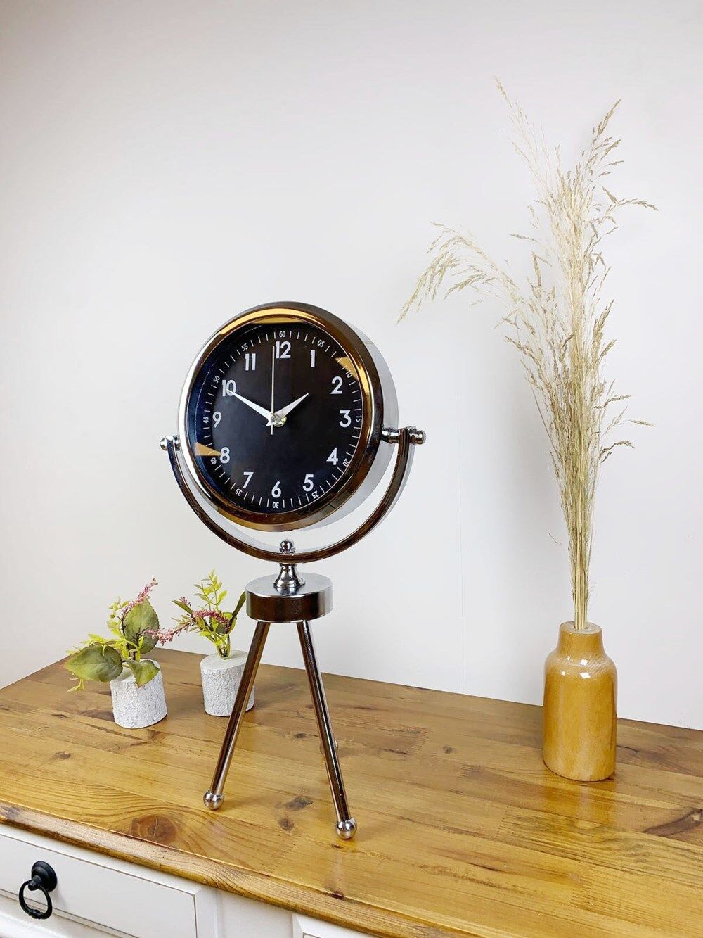 Krom Metal Mini Tripod Gece Siyahı Masa Saati 45×26 cm