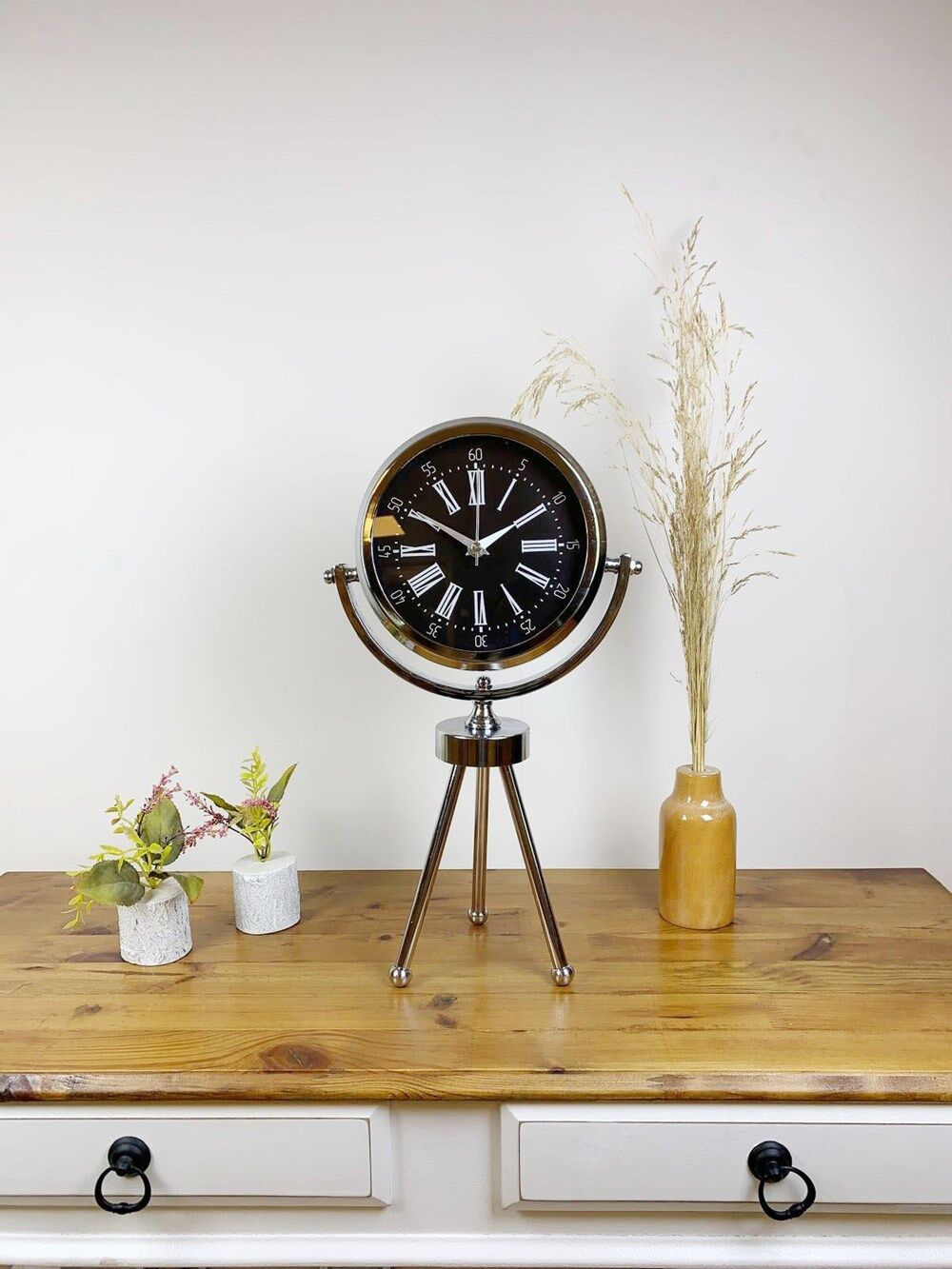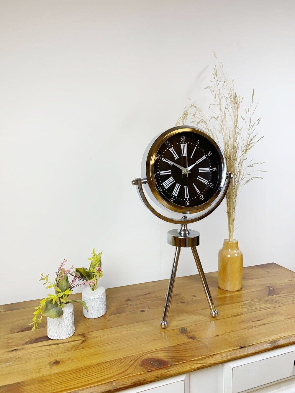 Krom Metal Mini Tripod Roma Rakamlı Masa Saati 45×26 cm
