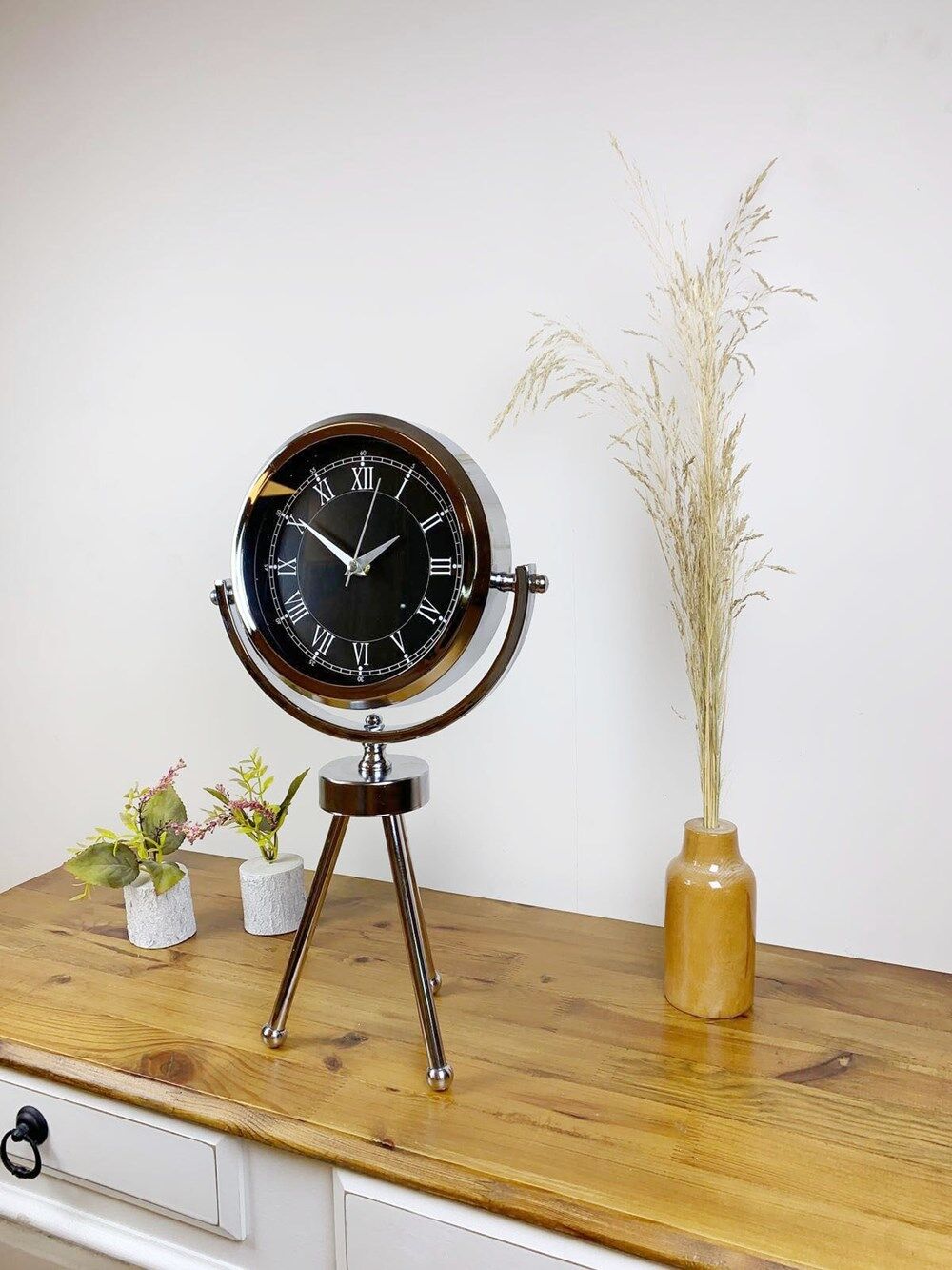 Krom Metal Mini Tripod Siyah Retro Masa Saati 45×26 cm