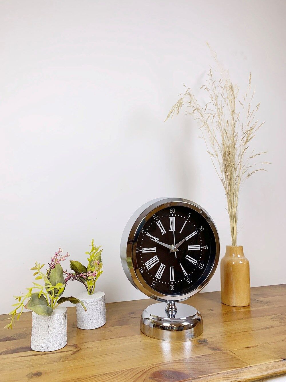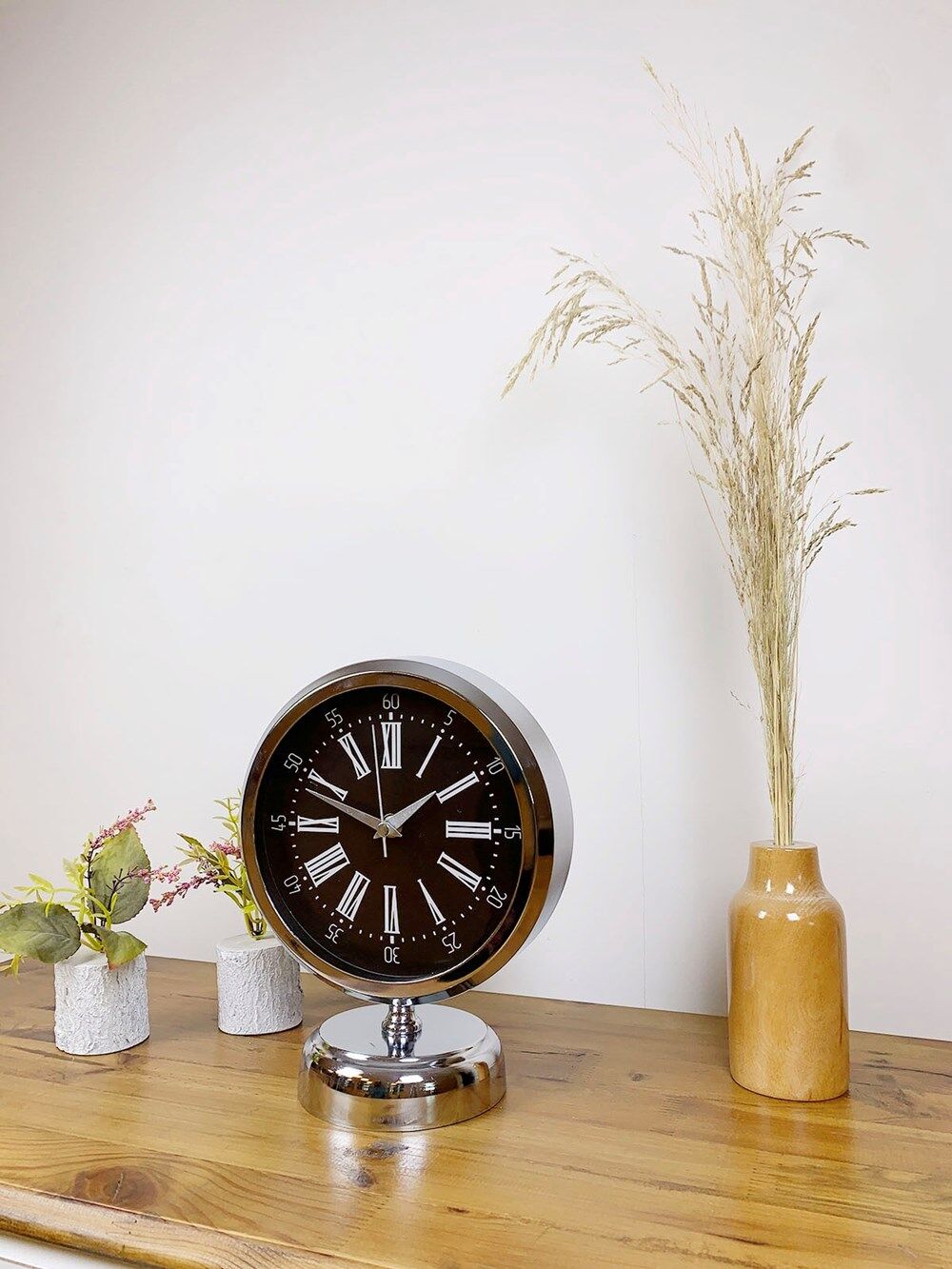 Krom Metal Roma Rakamlı Masa Saati 25×20 cm