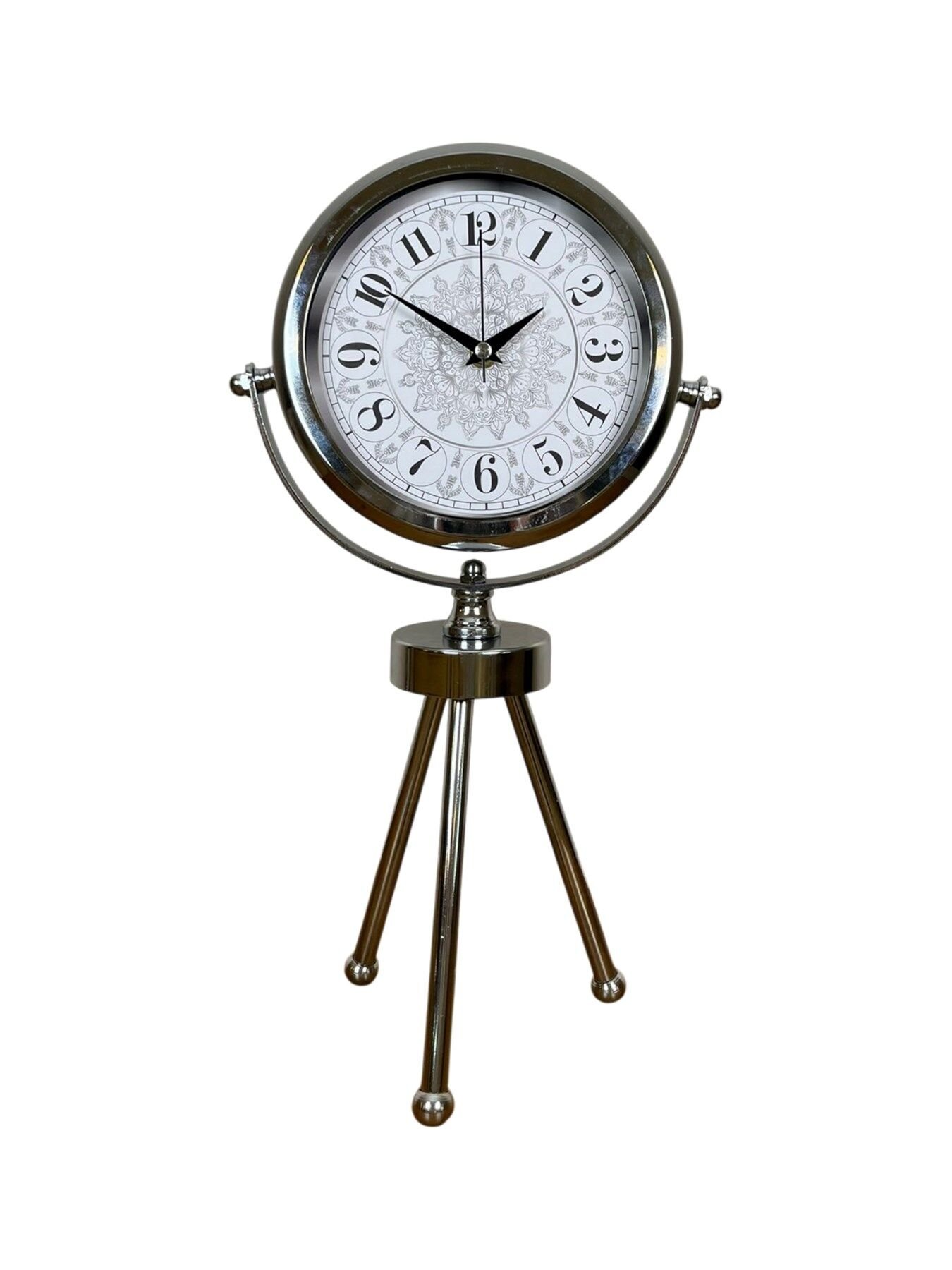 45 x 25 cm ölçülerindeki bu şık krom üç ayaklı masa saati, modern tasarımı ve parlak metal gövdesiyle her ortamda dikkat çeken zarif bir dekorasyon ürünüdür. Gerçek cam korumalı kadranı sayesinde uzun ömürlü ve net bir görüntü sunar. Sessiz çalışan mekanizması ile ev, ofis ve çalışma alanlarında konforlu bir kullanım sağlar. Dayanıklı metal tripod ayak yapısı, saati sadece bir zaman göstergesi değil aynı zamanda estetik bir obje haline getirir.