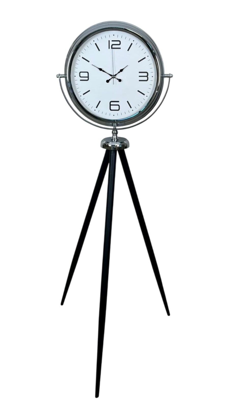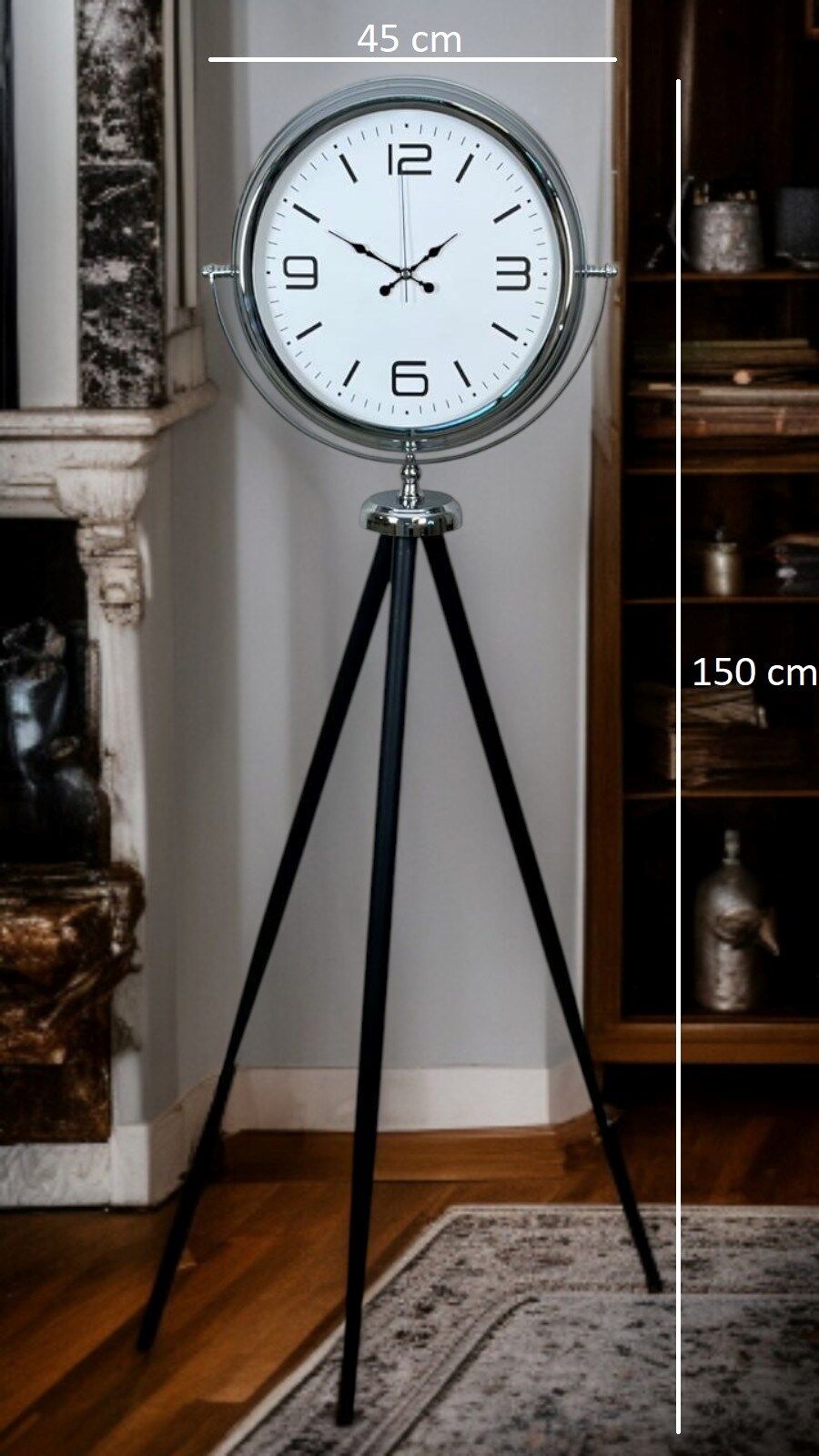 ⏱️ Krom Tripod Ayaklı Dekoratif Saat – 150 × 45 cm (Beyaz Kadran)