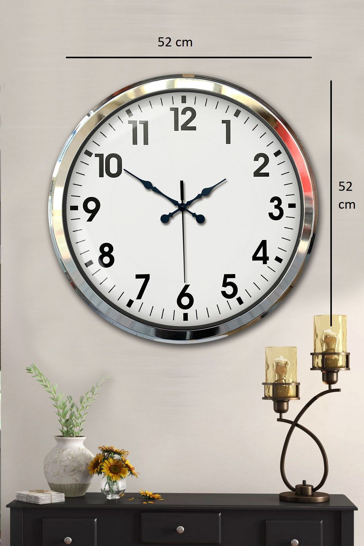 Krom çerçevenin şık parlaklığı, modern, minimalist, klasik veya lüks dekorasyon tarzlarının tümüne kolayca uyum sağlar. Ürün hafif yapısı sayesinde duvara monte etmek çok kolaydır. 52 cm genişliği ile büyük duvar saatleri kategorisinde yer alır ve bulunduğu alana premium bir görünüm kazandırır.